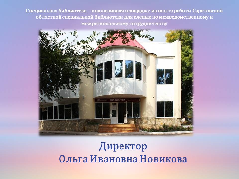 В настоящее время Саратовская областная специальная библиотека для слепых – инклюзивная площадка и мы обслуживаем не только людей с проблемами зрения, с другими ограничениями по здоровью, но и людей пожилого возраста, специалистов, профессионально занимающихся проблемами инвалидов и инвалидности, родителей детей-инвалидов, студентов, волонтёров.