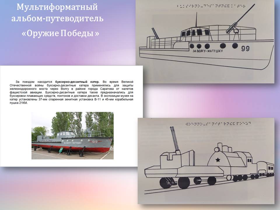 В рамка проекта «Музей для всех!» подробно остановилась на сотрудничестве с историко-патриотическом комплексом «Музей боевой и трудовой славы» и представила как результат сотрудничества мультиформатный альбом-путеводитель по экспозиции легендарной техники времён Великой Отечественной войны «ОРУЖИЕ ПОБЕДЫ» 75-летию Великой Победы посвящается 1941-1945», расположенной на территории Саратовского историко-патриотического комплекса «Музей боевой и трудовой славы».