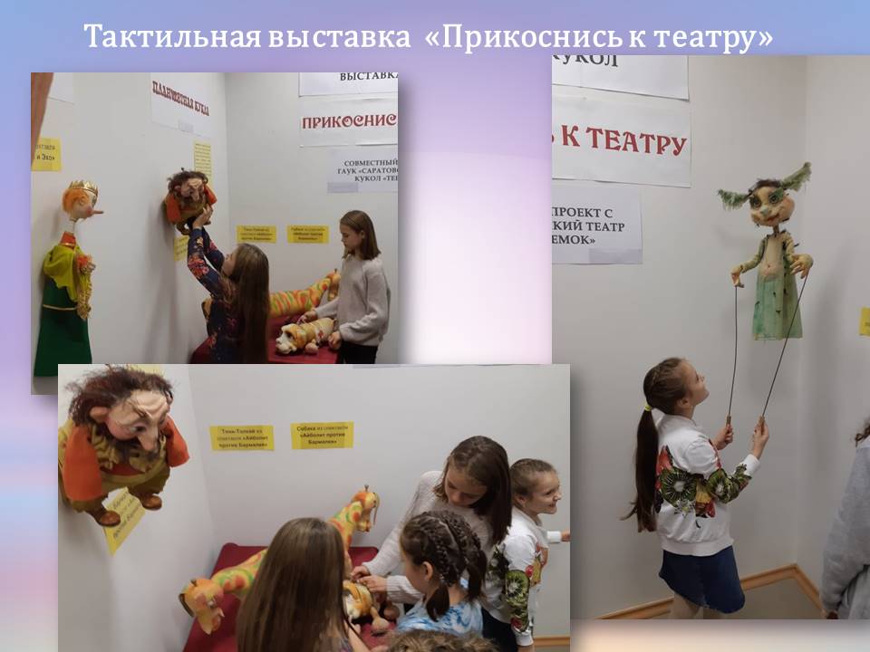 Для помощи в создании инклюзивной среды в 2019 году на базе нашей библиотеки были привлечены Саратовский театр кукол «Теремок» и волонтёры движения «Абилимпикс». Был реализован инклюзивный проект «Театр для всех». Для проекта было выделено зонированное пространство и разработана тактильная выставка «Прикоснись к театру».