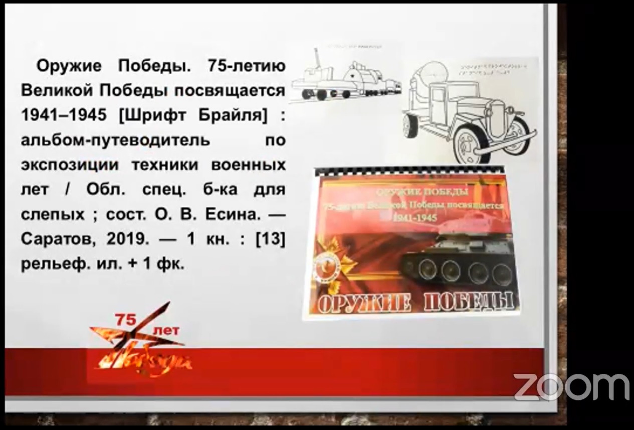 ГУК «Областная специальная библиотека для слепых» награждена дипломом III степени в номинации «Лучшее краеведческое издание по тематике Конкурса» за мультиформатный альбом-путеводитель по экспозиции легендарной техники времён Великой Отечественной войны «ОРУЖИЕ ПОБЕДЫ» 75-летию Великой Победы посвящается 1941-1945».