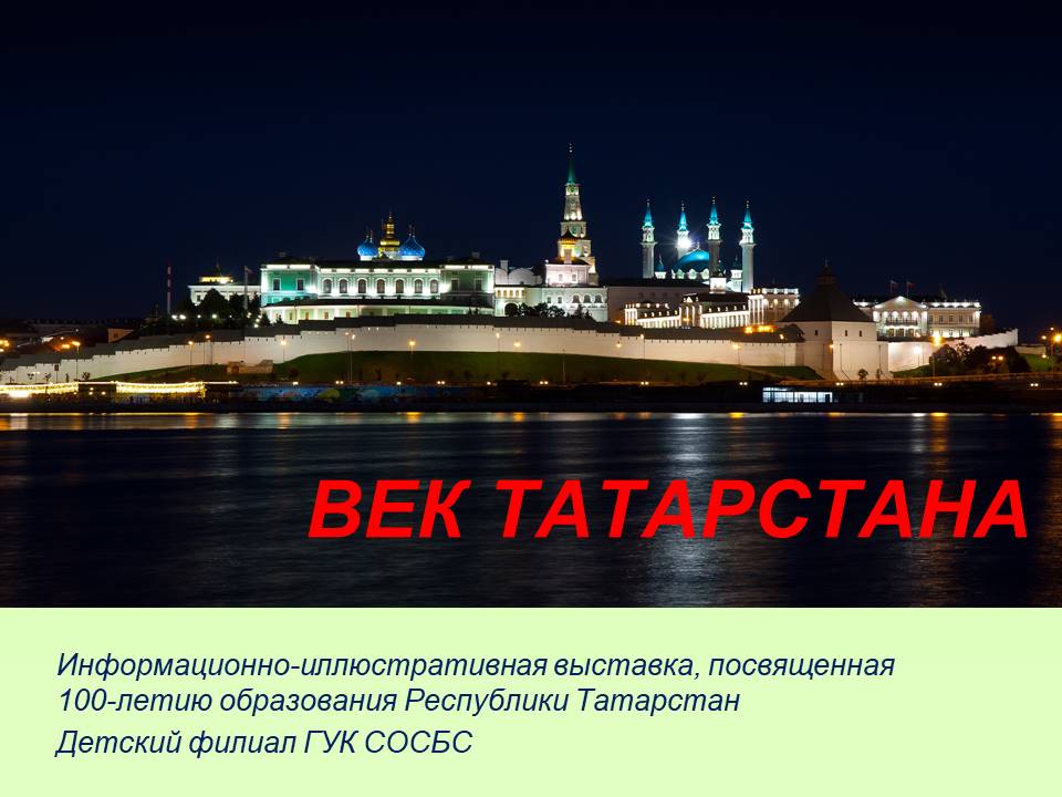 «Век Татарстана» - выставка, организованная для читателей нашей библиотеки, посвященная 100-летию образования республики. На ней представлены материалы, связанные с историей становления Татарской АССР и о современном облике Республики.