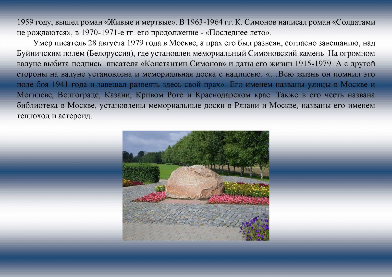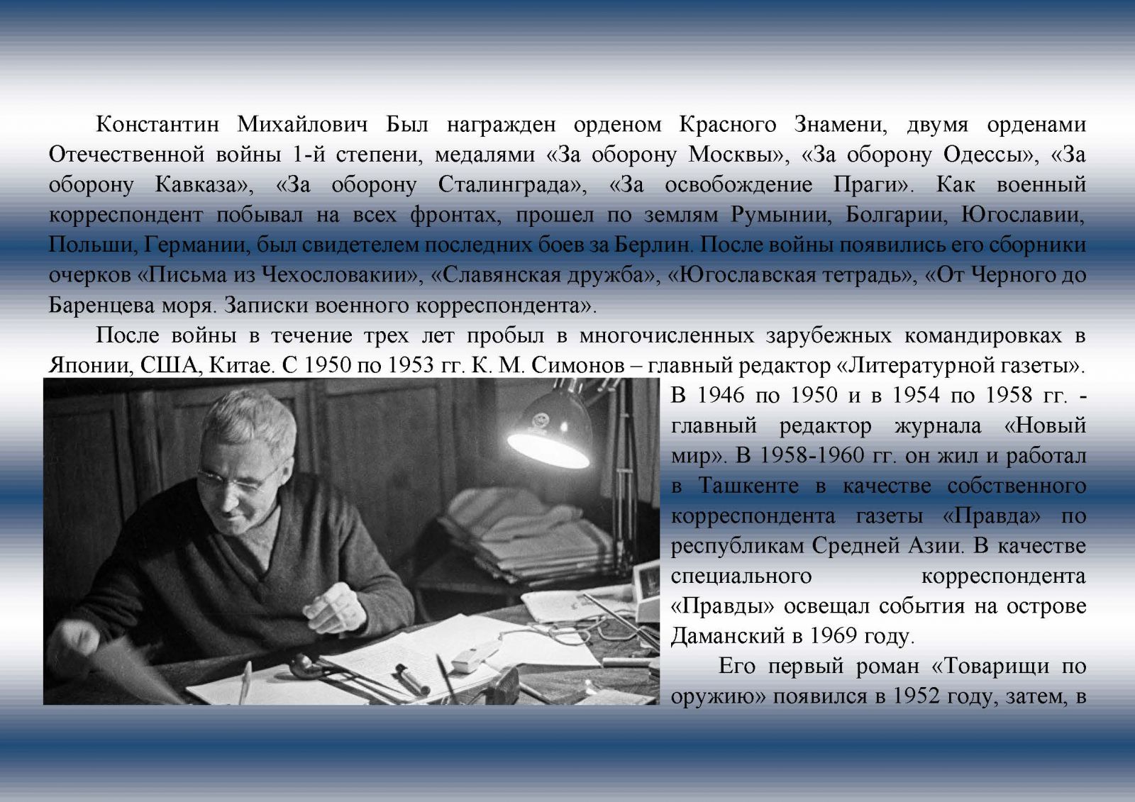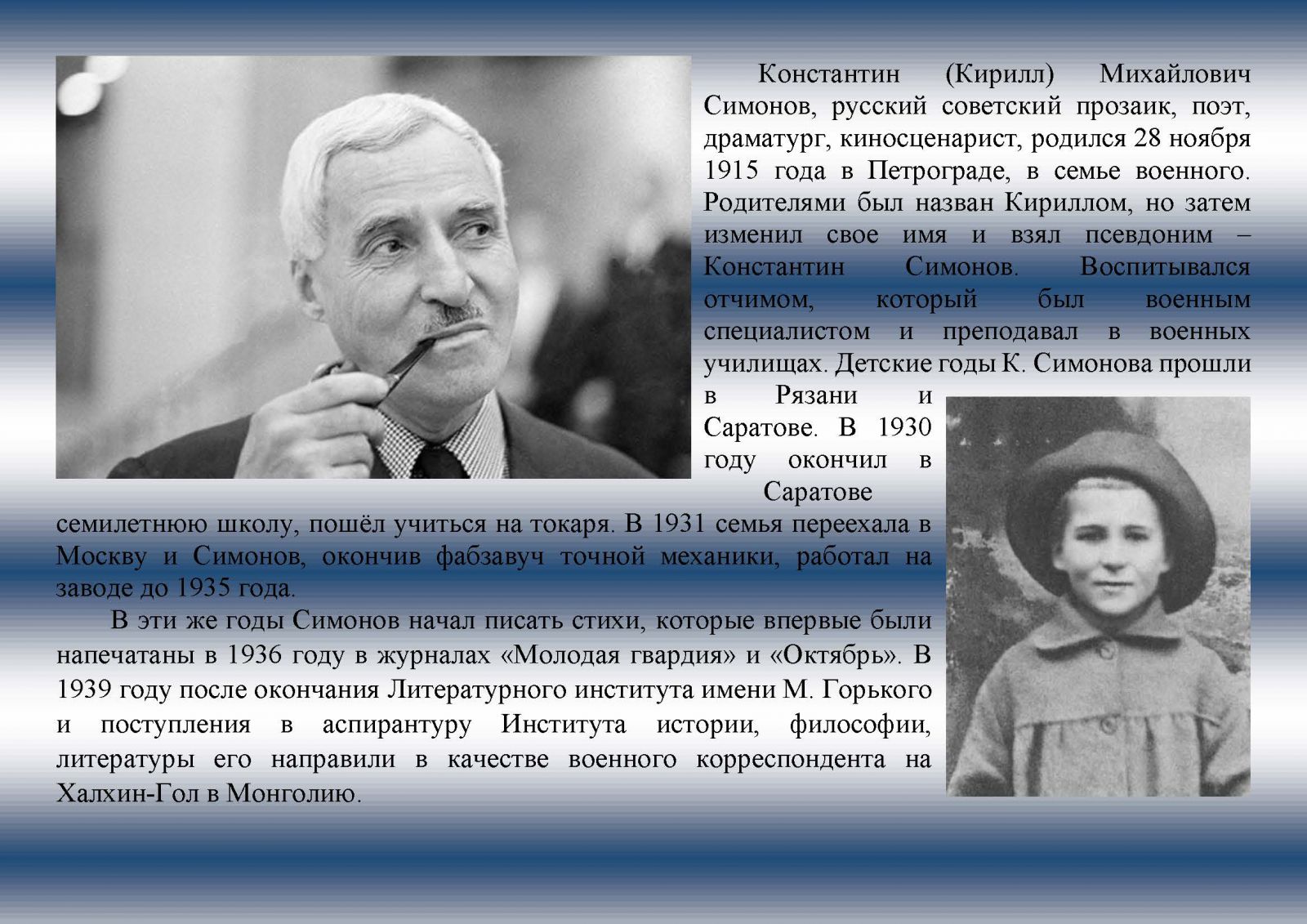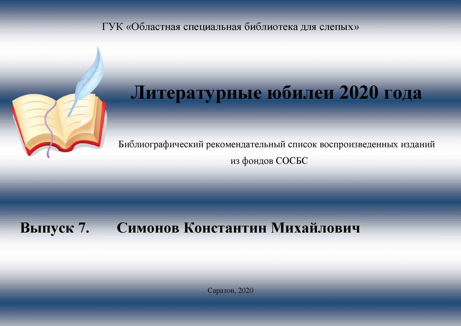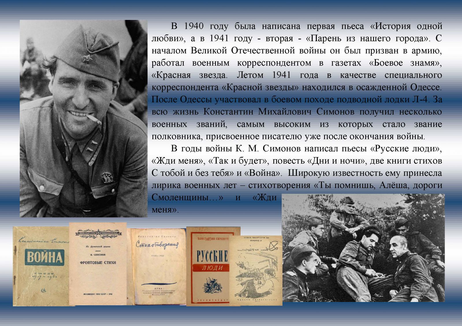 Литературные юбилеи 2020 года. Выпуск 7. К.М. Симонов (1915 - 1979)