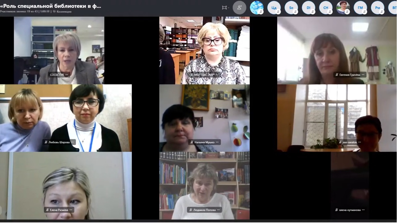 ГУК «Областная специальная библиотека для слепых» при поддержке Министерства культуры Саратовской области 1 декабря провела областной семинар в онлайн-формате «Роль специальной библиотеки в формировании доступной информационно-библиотечной среды региона», приуроченный к Международному дню инвалидов.