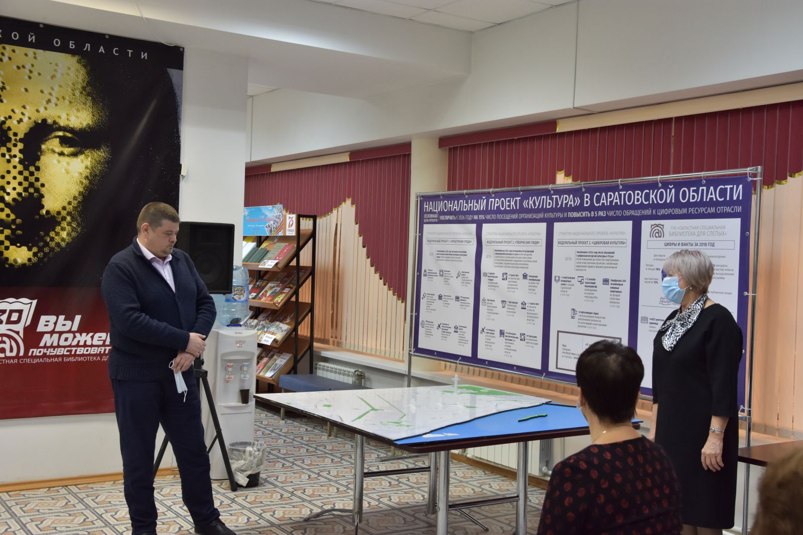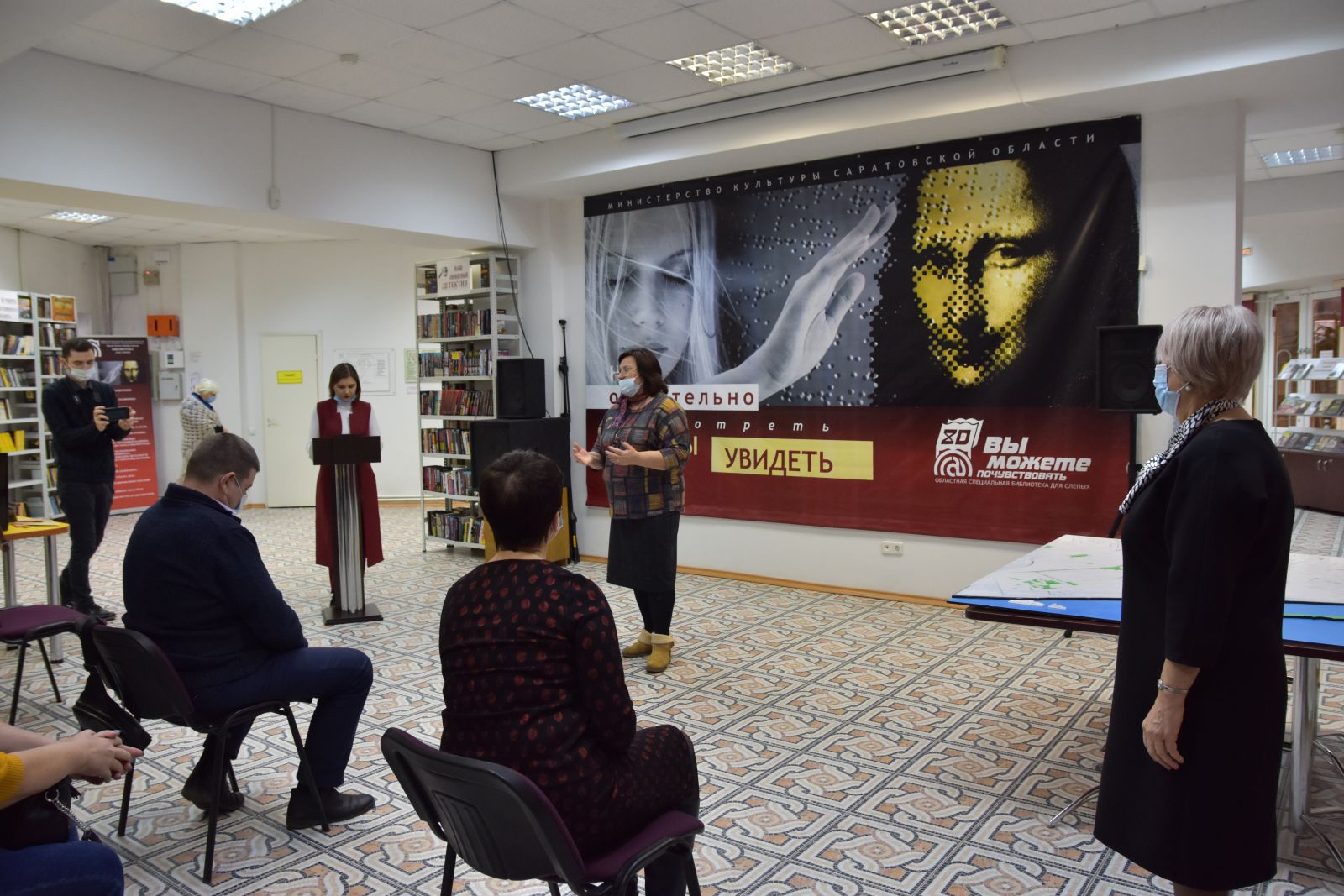 Все присутствующие гости выразили поддержку реализации проекта «Зримый Саратов» ГУК «Областная специальная библиотека слепых». Есть первый результат этого проекта – тактильная карта города Саратова, которую выполнил ГАПОУ СО «Саратовский архитектурно-строительный колледж», директор Степанова Варвара Владимировна, а также мультиформатный альбом-путеводитель по экспозиции легендарной техники времён Великой Отечественной войны «ОРУЖИЕ ПОБЕДЫ» 75-летию Великой Победы посвящается 1941-1945», автор альбома – специалист библиотеки Есина Ольга Викторовна.