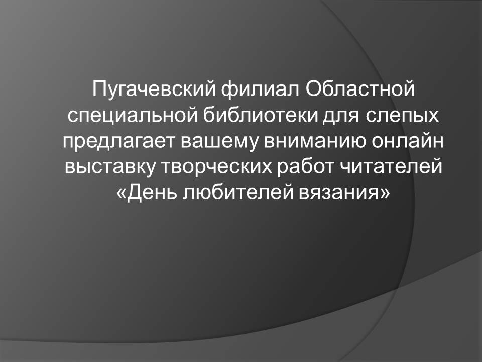 Пугачёвский филиал Областной специальной библиотеки для слепых предлагает вашему вниманию выставку творческих работ читателей «День любителей вязания».