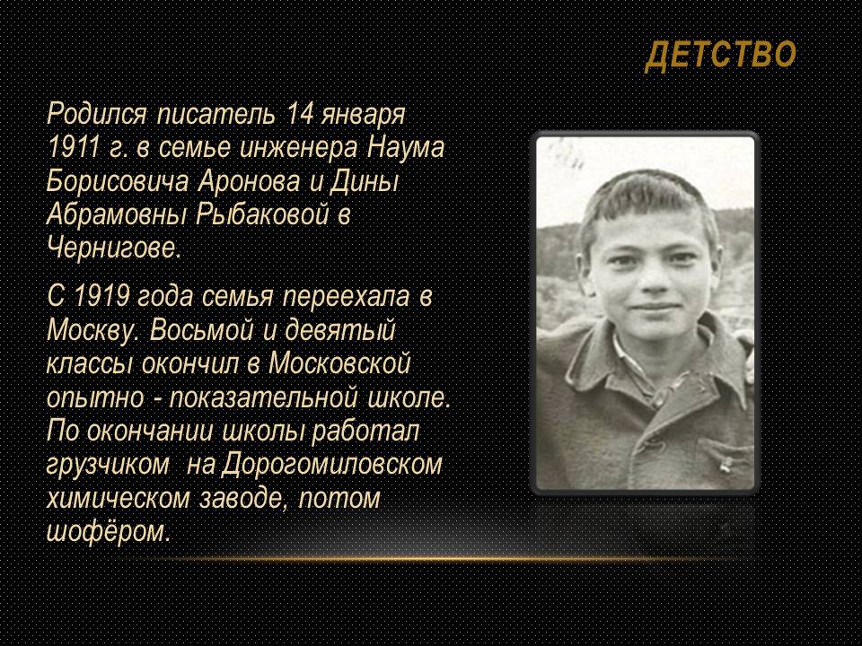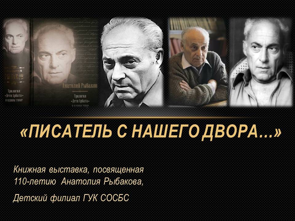В Детском филиале Областной специальной библиотеки для слепых открылась для посещений книжная выставка «Писатель с нашего двора..» к 110-летию со дня рождения А.Н. Рыбакова (1911 – 1998) для всех категорий читателей. Выставка познакомит читателей с жизнью и творчеством писателя.