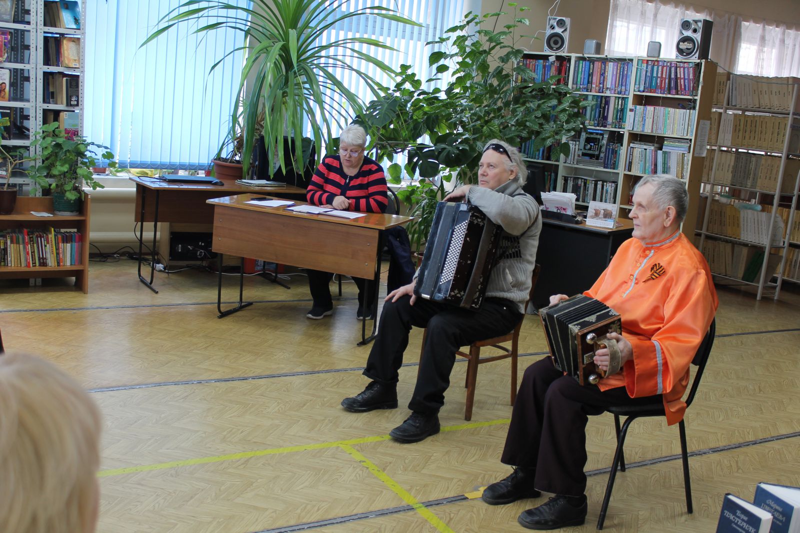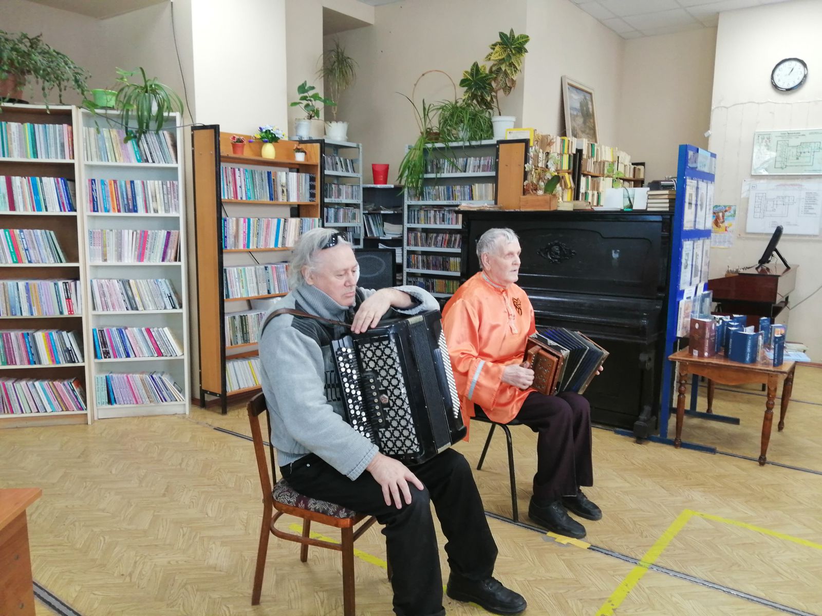 В исполнении читателей нашего филиала прозвучали произведения Ивана Паницкова. Василий Пыхтунов на саратовской гармонике исполнил «Мазурку», «Польку», «Вальс» и «Саратовские переборы». Так же он рассказал о концерте Ивана Паницкова, который прошел в клубе УПП ВОС в Энгельсе. Алексей Котельников исполнил на баяне свои произведения, посвященные творчеству Ивана Паницкова – «Ах, колокольчики, бубенчики» и вариацию на русские народные песни.