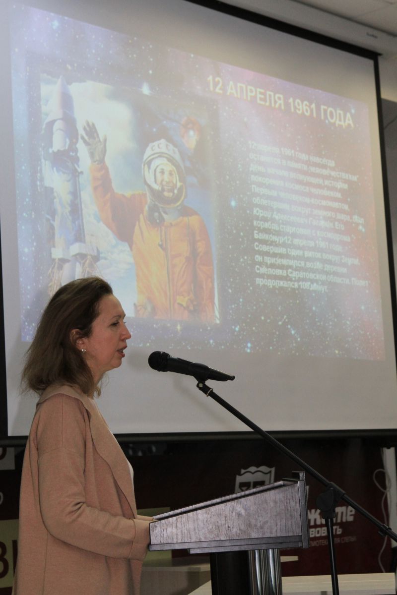 Перед началом мероприятия прозвучало яркое выступление актёра, ведущего мастера сцены ГАУК «Саратовский государственный академический театр драмы имени И.А. Слонова» Валерия Ерофеева. Прозвучал отрывок из книги «Дорога в космос» Ю.А. Гагарина. Это выступление очень тронуло всех присутствующих.