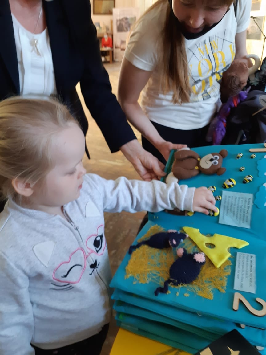 Тактильные книги, представленные на выставке, предназначены для незрячих детей. С появлением самых первых посетителей ярмарки мы увидели, что эти книги вызывают огромный интерес у всех.