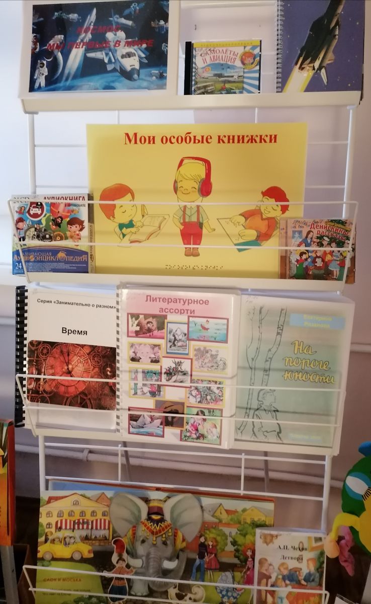 На выставке также представлены новинки детских книг в обычном формате. Специалисты библиотеки осуществляют громкие чтения.