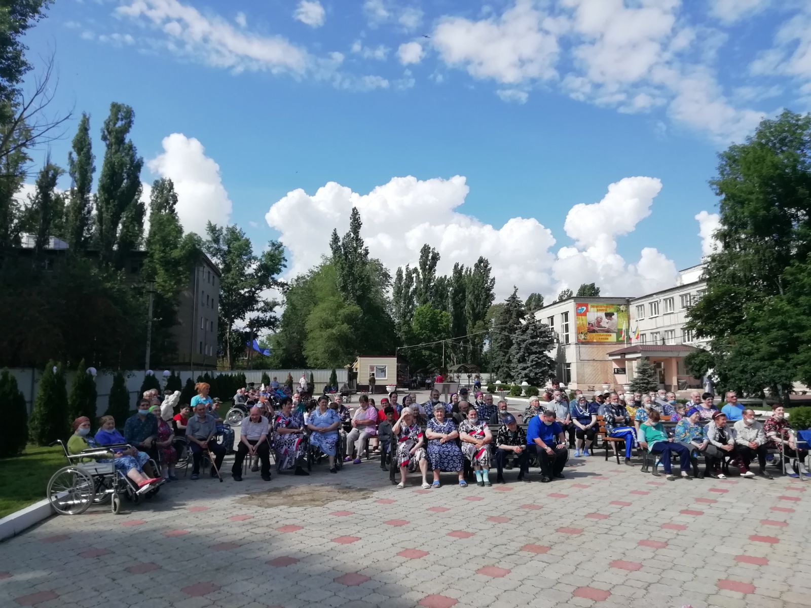 Вокальный ансамбль «Сударушки» подготовили для проживающих в доме-интернате концерт с созвучным празднику названием «Россия – Родина моя!». Мероприятие проходило на открытой территории.