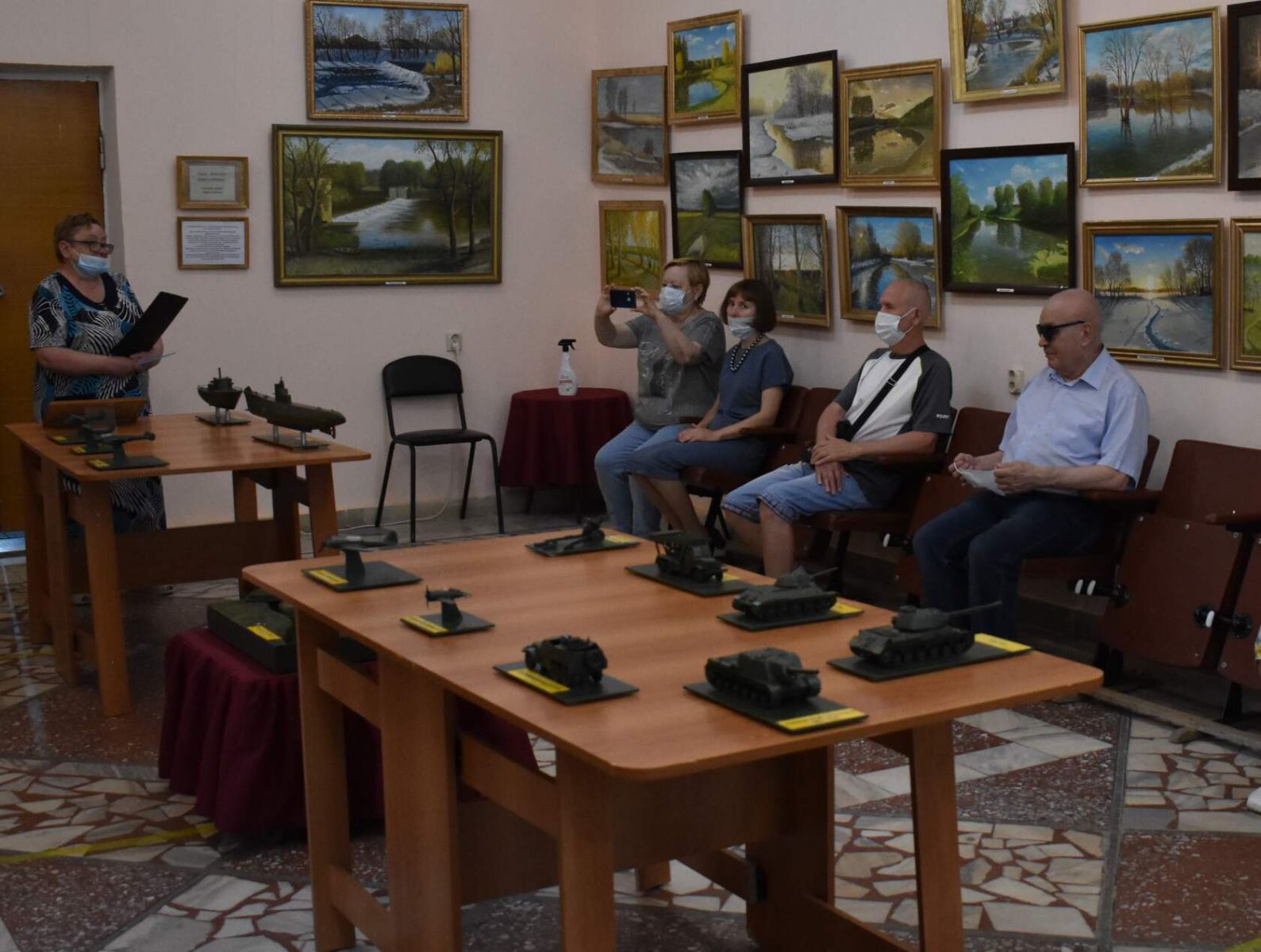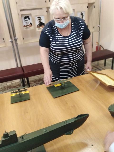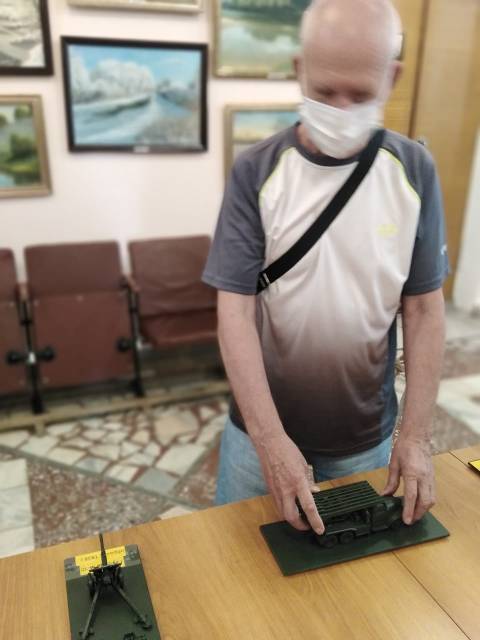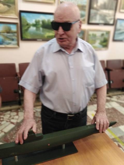 Первыми привилегированными посетителями выставки стали читатели Саратовской областной специальной библиотеки для слепы - члены Балашовского отделения Всероссийского общества слепых. Ученый секретарь музея Татьяна Леонидовна Васина познакомила их с историей создания образцов военной техники, рассказала о земляках, которые воевали в годы войны на катерах, самолетах, танках, представленных в экспозиции выставки.