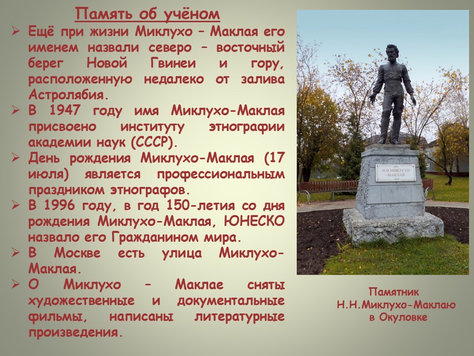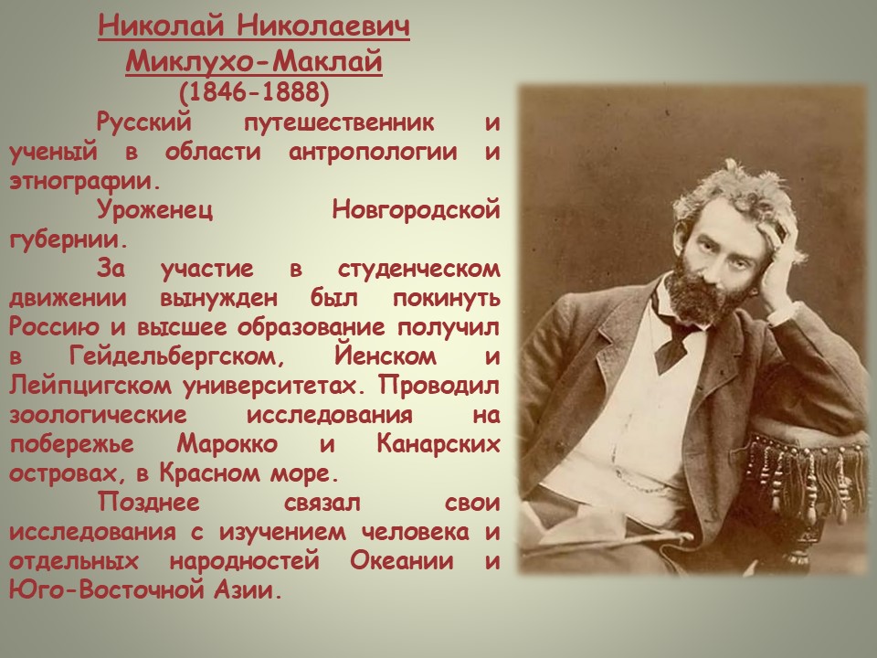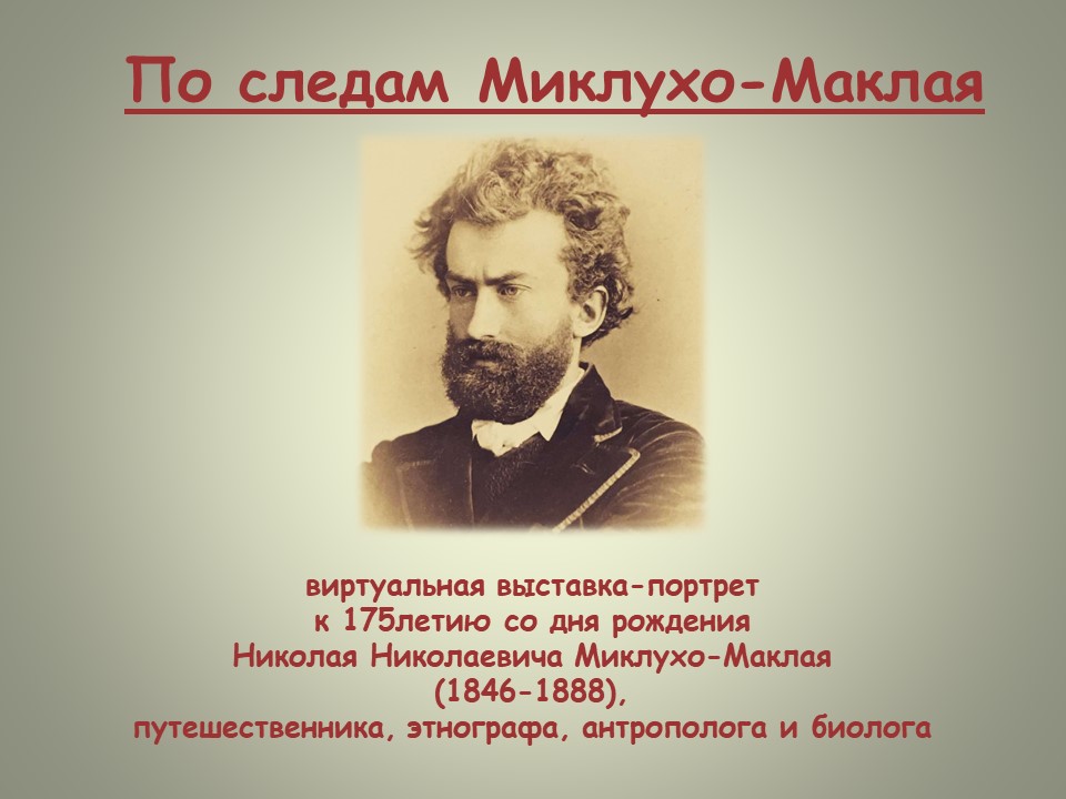 В этом году отмечается 170 лет со дня его рождения Николая Николаевича Миклухо-Маклая. Этому событию посвящена виртуальная книжная выставка-портрет «По следам Миклухо-Маклая». На выставке представлены копии рисунков Н. Н. Миклухо-Маклая XIX века, экспедиционные фотографии.