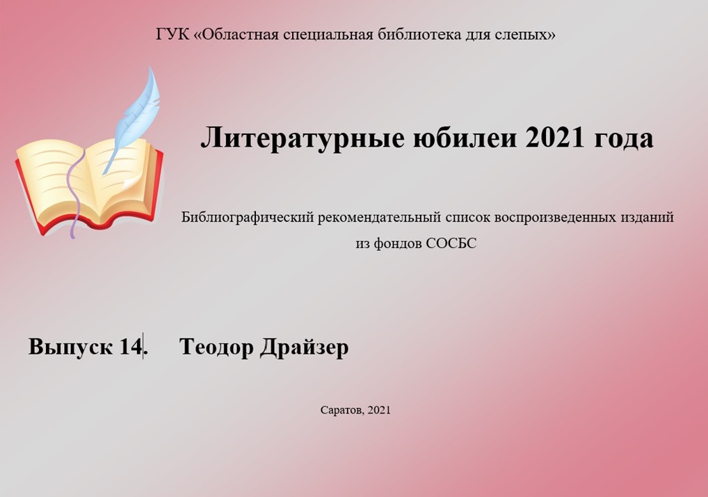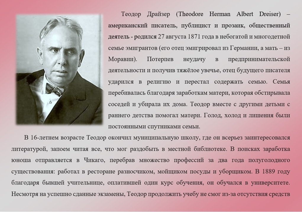 Литературные юбилеи 2021 года. Теодор Драйзер (1871 – 1945)