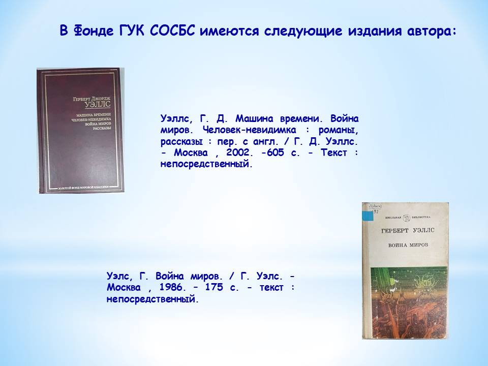 Виртуальная книжная выставка «Фантастические миры Герберта Уэллса».