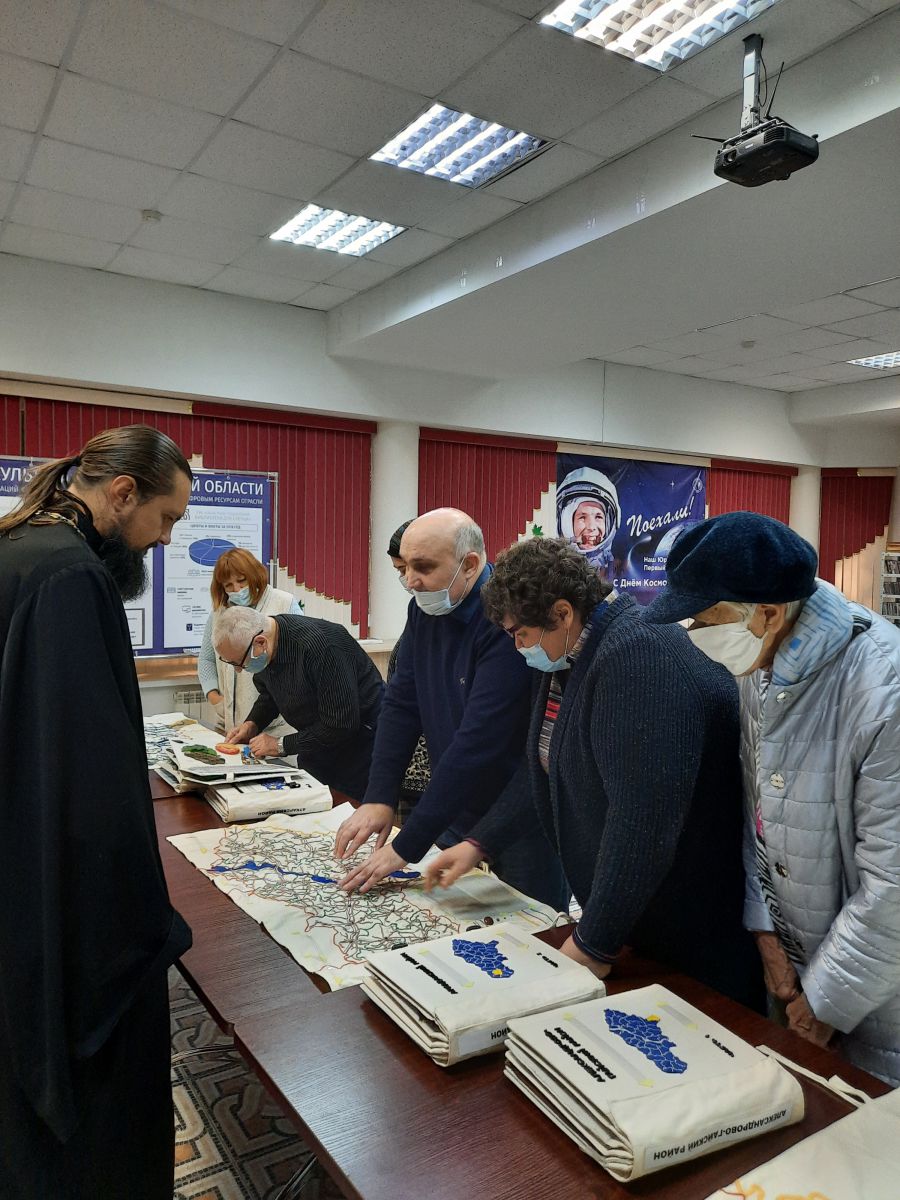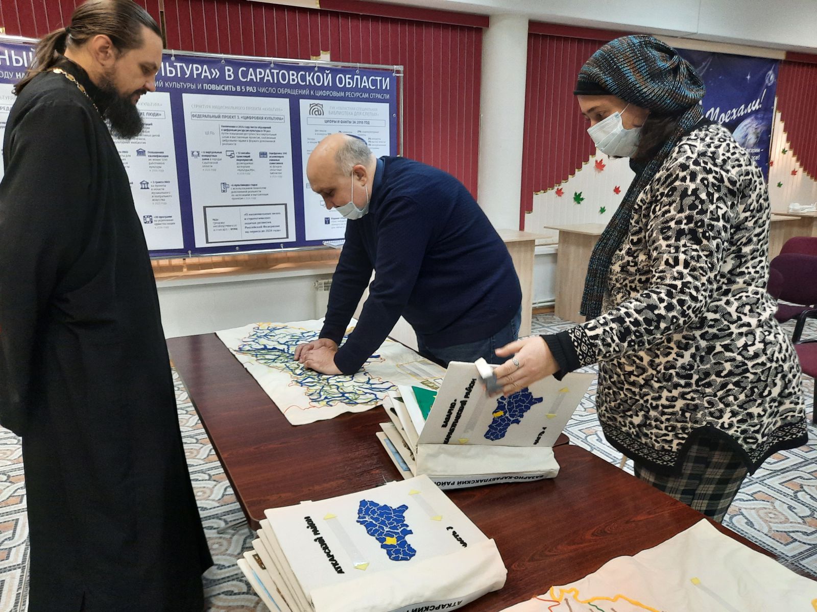 Презентацию атласа для читателей и сотрудников библиотеки провёл руководитель волонтёрского проекта Покровского собора Саратова по созданию тактильных книг священник Кирилл Петрович.