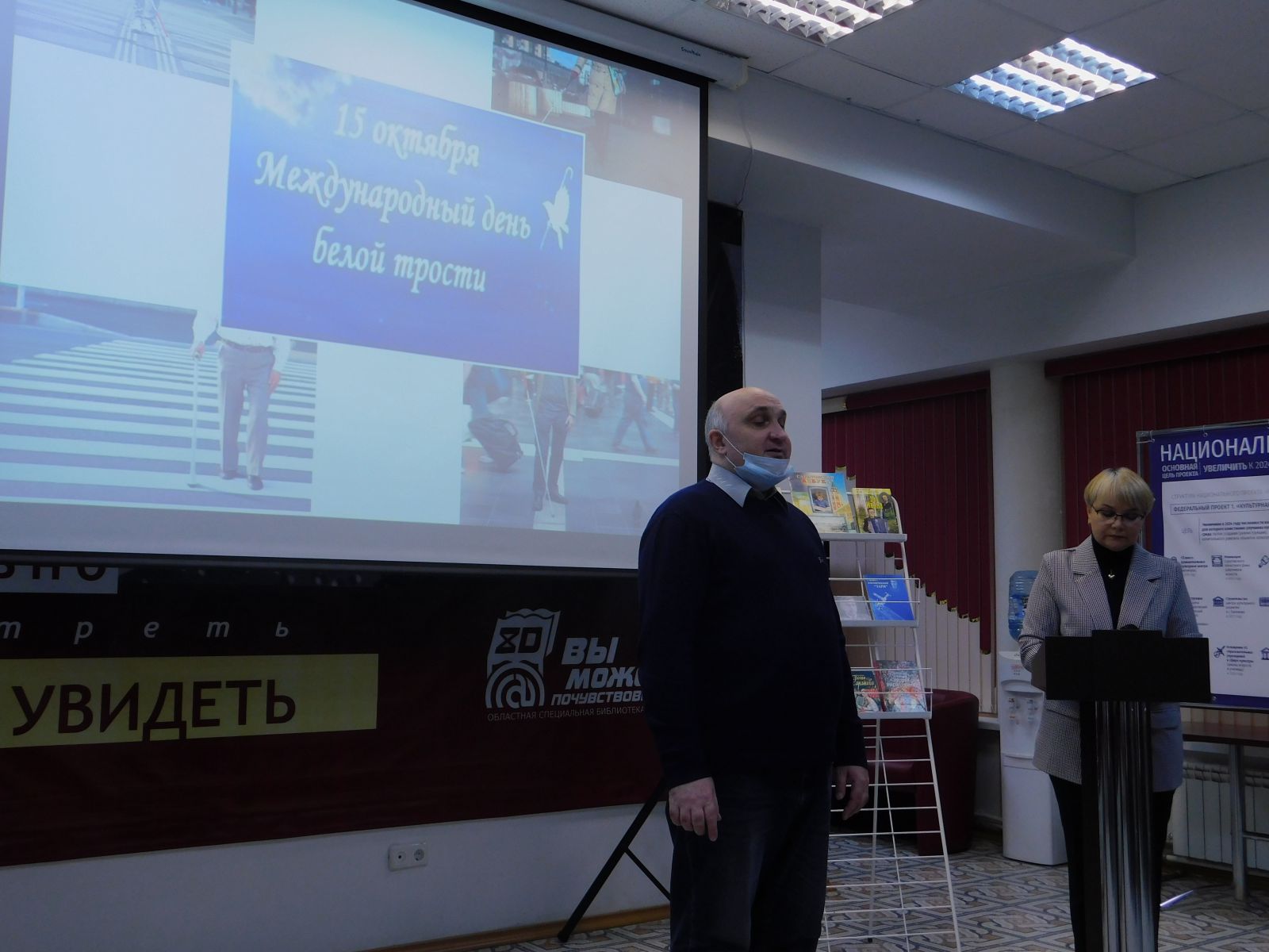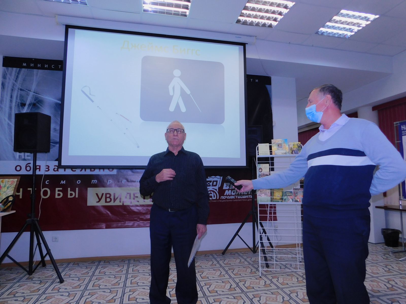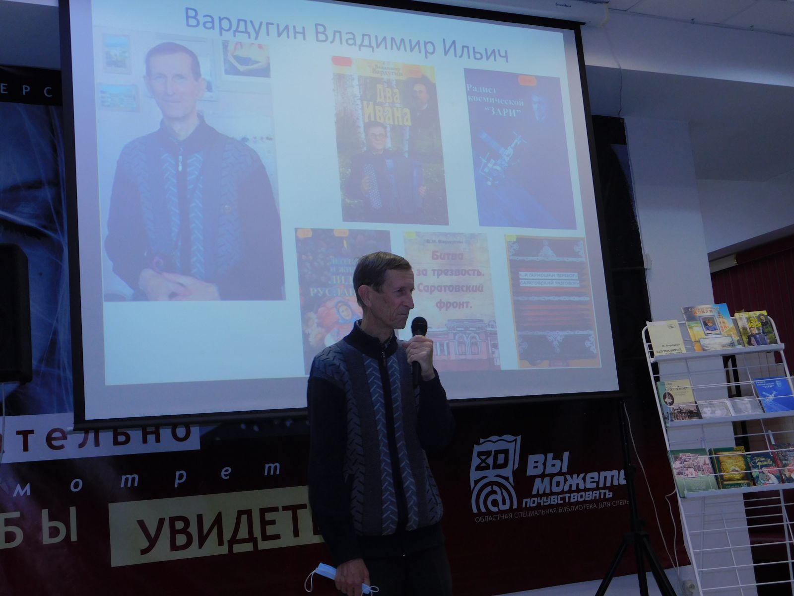 Впервые в Международный день белой трости в Областной специальной библиотеке для слепых выступил член Союза писателей России, саратовский краевед, автор энциклопедии по истории саратовской гармоники и многих других книг по истории края Владимир Вардугин, как участник проекта «Голос Паницкого». В.И. Вардугин – автор нескольких произведений, посвящённых выдающемуся исполнителю на баяне, талантливому музыканту, нашему земляку Ивану Яковлевичу Паницкому. Владимир Ильич поделился своими воспоминаниями о И.Я. Паницком.