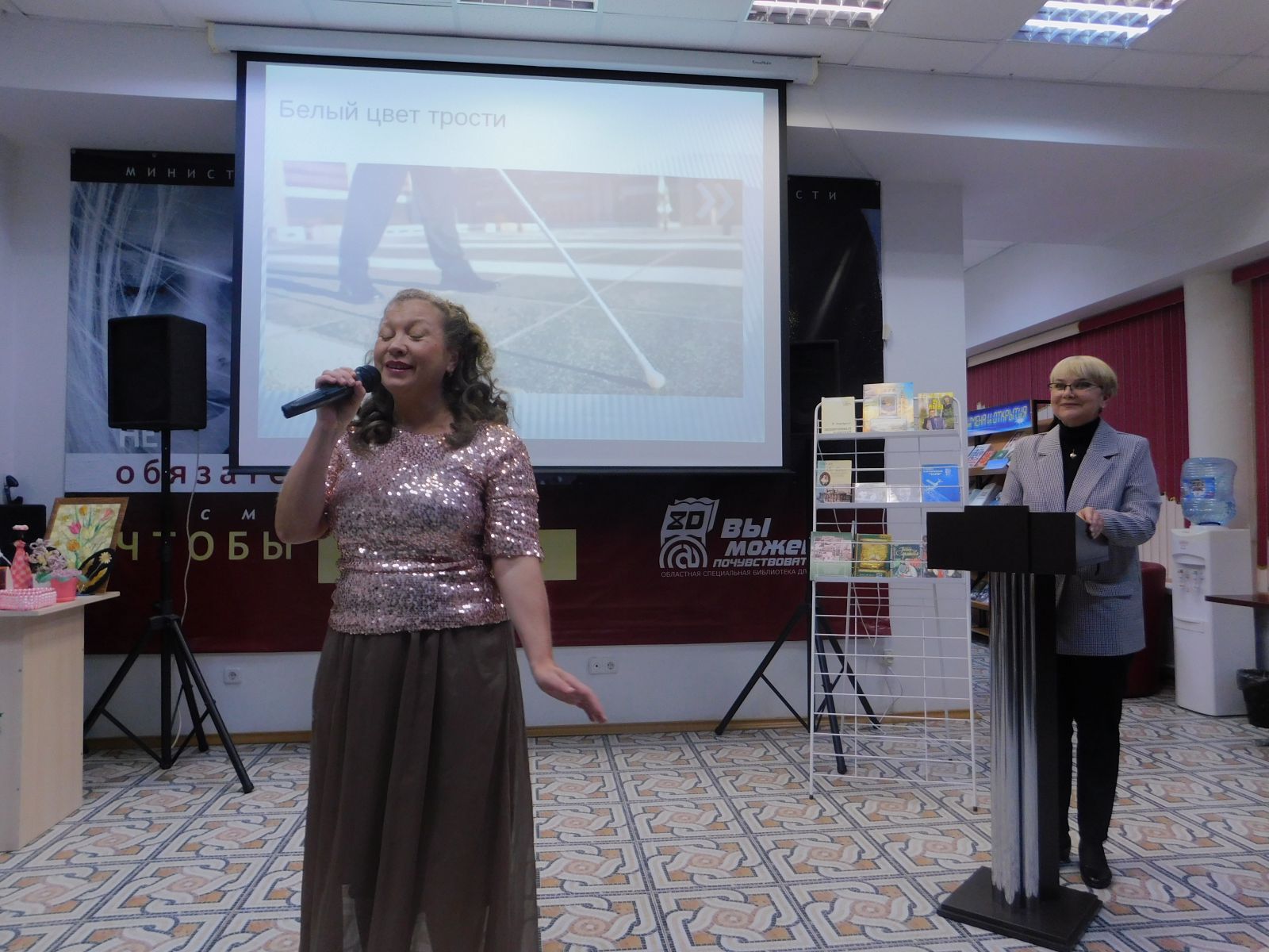 О незрячих людях говорят: «Они видят сердцем». В Международный день белой трости в Областной специальной библиотеке для слепых выступили наши талантливые читатели – Фёдор Бородин, Галина Енькова, Елена Зверева. В их исполнении прозвучали стихи и песни, подарившее хорошее и радостное настроение всем присутствующим на мероприятии.