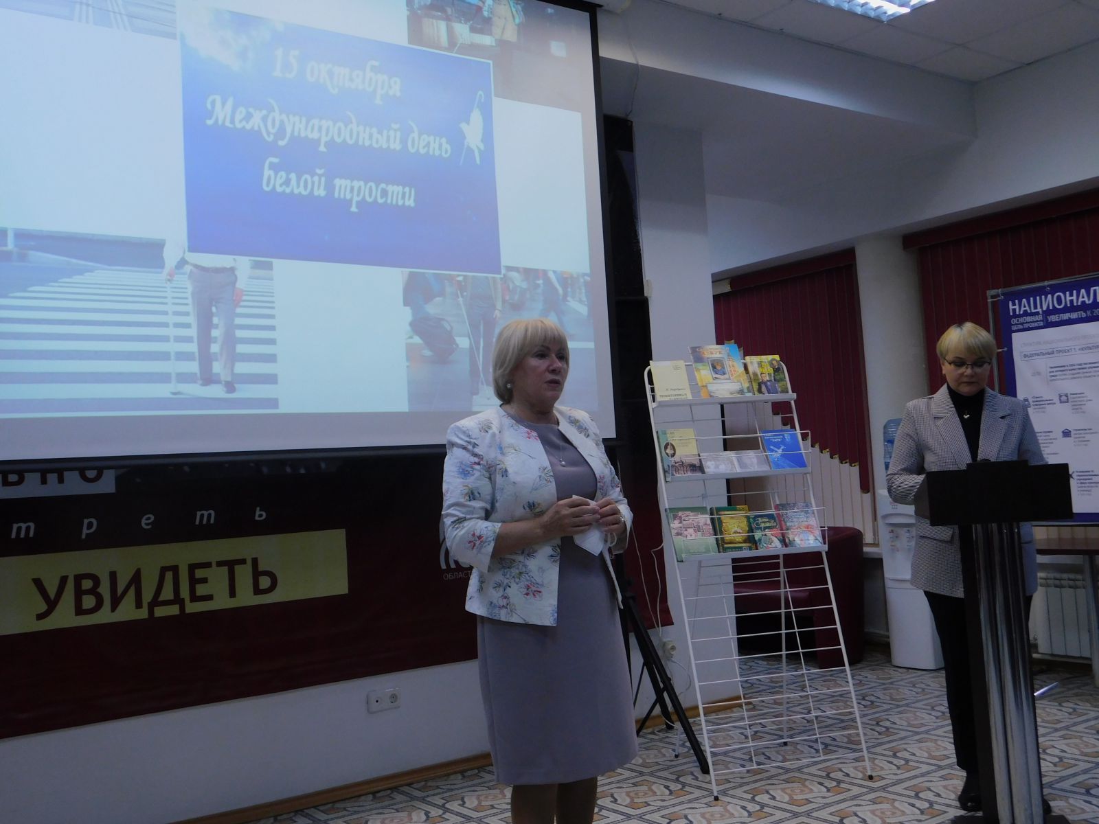 Ежегодно наша библиотека с участием Саратовской областной организации общероссийской общественной организации инвалидов «Всероссийское ордена Трудового Красного Знамени общество слепых», которая всецело поддерживает девиз Международного дня белой трости: «Толерантность. Равноправие. Интеграция» торжественно проводит этот день и открывает Месячник Белой трости. В период между 15 октября и 13 ноября – Международным днём слепых – проходят многочисленные мероприятия в рамках Месячника Белой трости.