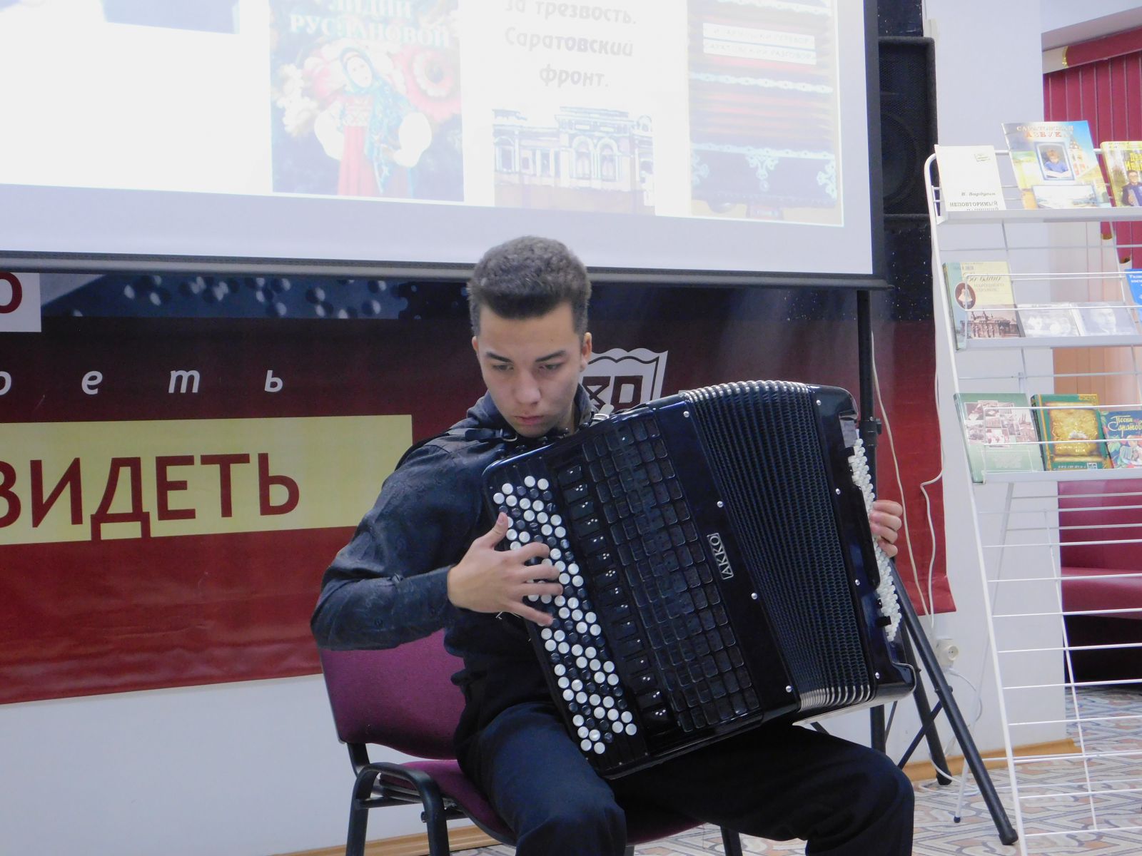 Во время мероприятия звучали замечательные музыкальные произведения Ивана Паницкого на баяне в исполнении ученика профессора кафедры народных инструментов В.В. Грачёва Саратовской государственной консерватории им. Л.В. Собинова Артура Сарвартдинова.