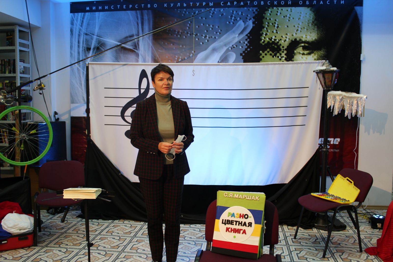 Директор ГУК «Областная специальная библиотека для слепых» Ольга Новикова поприветствовала маленьких особых читателей, гостей, друзей библиотеки и предложила присутствующим детям с ограниченными возможностями зрения совершить путешествие в волшебный мир театра. Но прежде, чем отправиться в путешествие по произведению классика детской литературы С.Я. Маршака, было предоставлено слово для приветствия и. о. министра культуры Саратовской области Татьяне Викторовне Астафьевой.