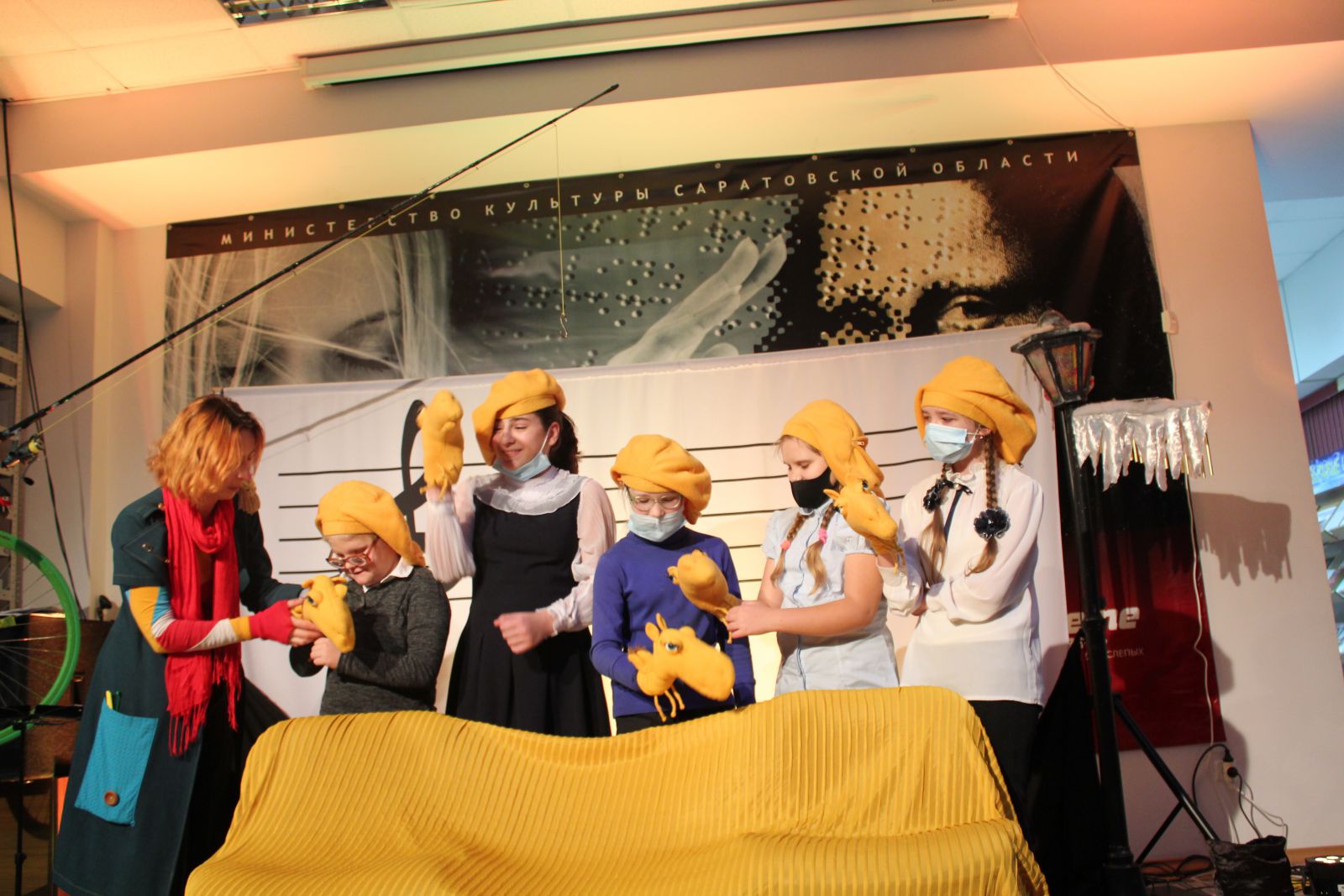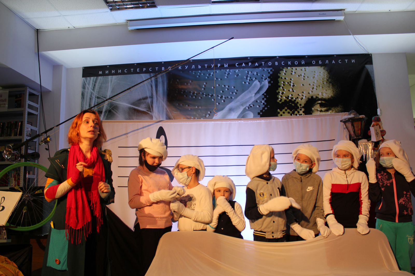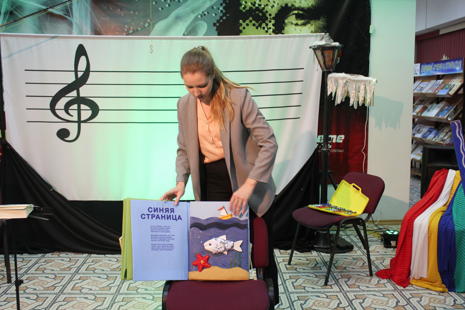 22 октября в уютном зале ГУК «Областная специальная библиотека для слепых» в рамках Месячника Белой трости и по соглашению о творческом взаимодействии с Санкт-Петербургским государственным учреждением культуры «Государственная специальная центральная библиотека для слепых и слабовидящих» и детским театром «ТриЧетыре» (г. Санкт-Петербург) был представлен адаптированный спектакль «Разноцветная книга» с тифлокомментариями – театральный проект «Ощути невидимое. Сказки для всех» за счёт средств Фонда Президентских грантов.