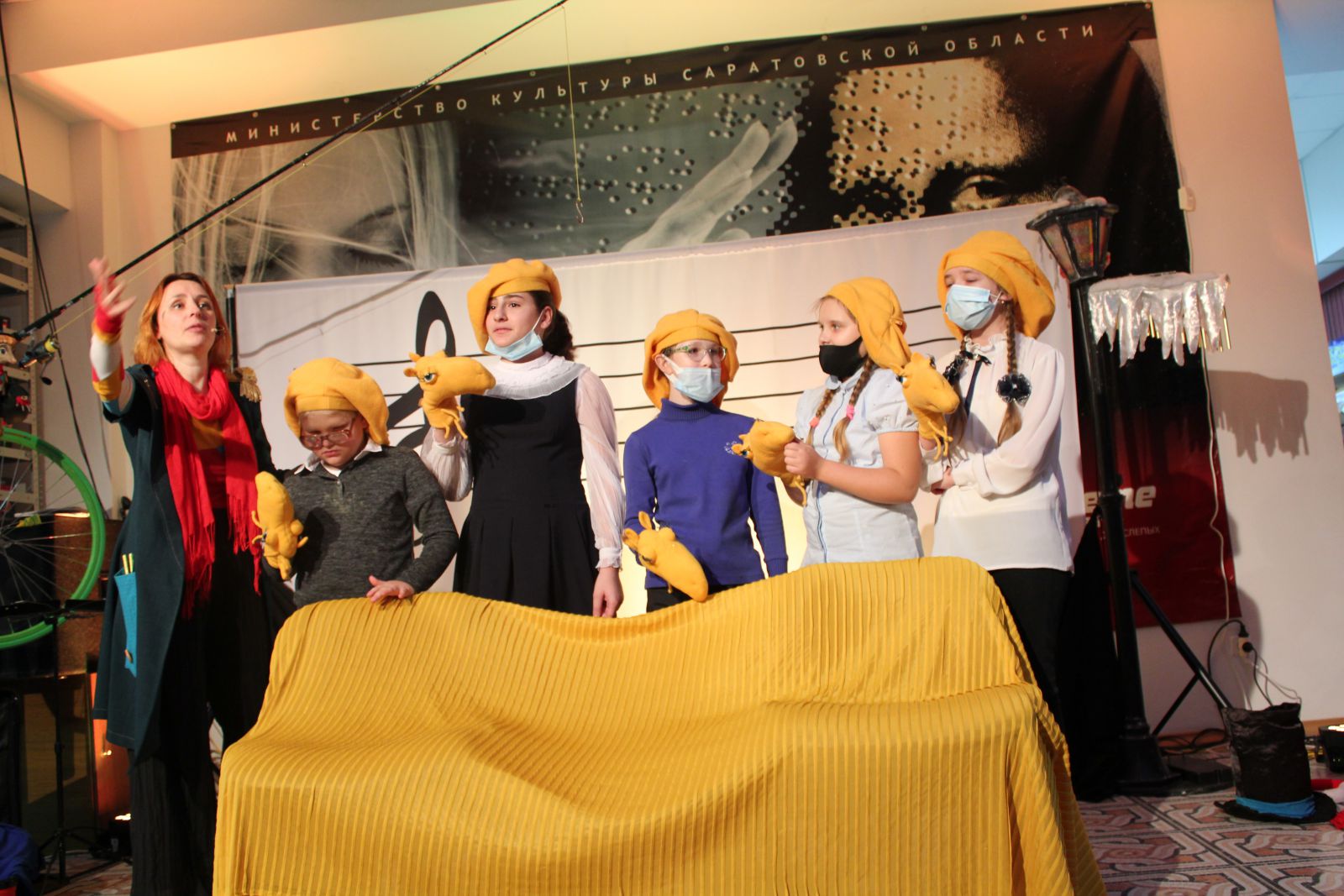 Т.В. Астафьева поблагодарила СПбГУК «Государственная специальная центральная библиотека для слепых и слабовидящих» и детский театр «ТриЧетыре» за оказанное доверие и возможность показать нашим самым маленьким особым читателям спектакль по произведению Маршака с тифлокомментариями, который впервые проводится на территории Саратовской области в ГУК «Областная специальная библиотека для слепых».
