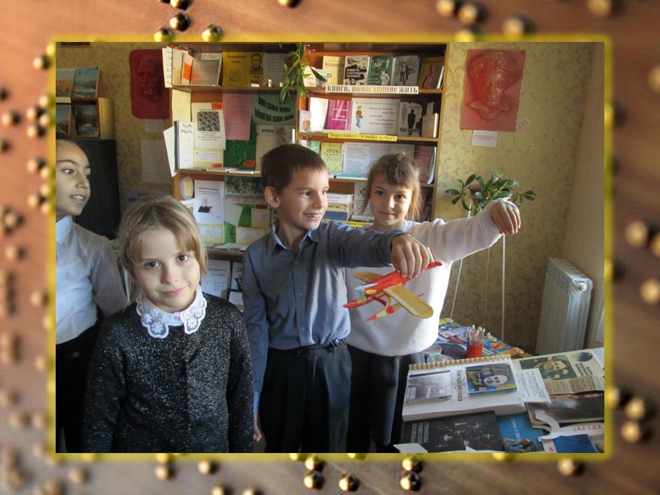 Юные посетители библиотеки узнали много нового об особом мире людей с белой тростью, о том, что помогает им воспринимать окружающий мир и жить в нем. Ребята пришли в гости не с пустыми руками, они подарили для читателей библиотеки сделанную ими модель самолета, который успешно «приземлился» на выставке «Книга – путь к звездам» к Году науки и технологий.