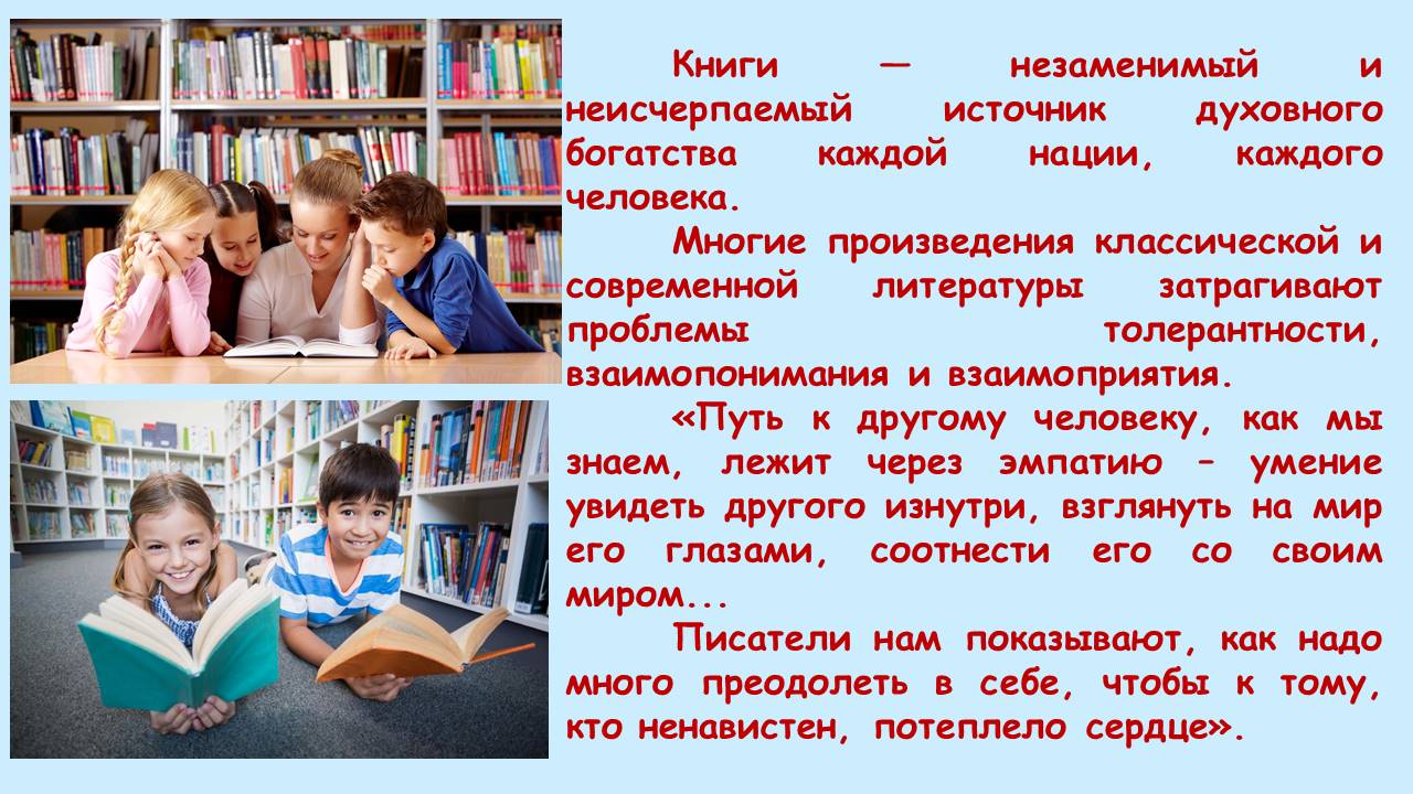 Ссылка на виртуальную книжную выставку «Толерантность в художественной литературе»
