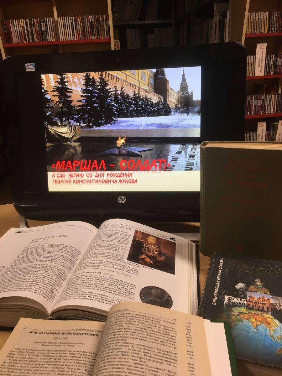 Сегодня, в канун памятной даты, Детский филиал пригласил своих читателей на час информации «Маршал - солдат», посвященный 125-летию четырежды Героя Советского Союза Георгия Константиновича Жукова (1896-1974).