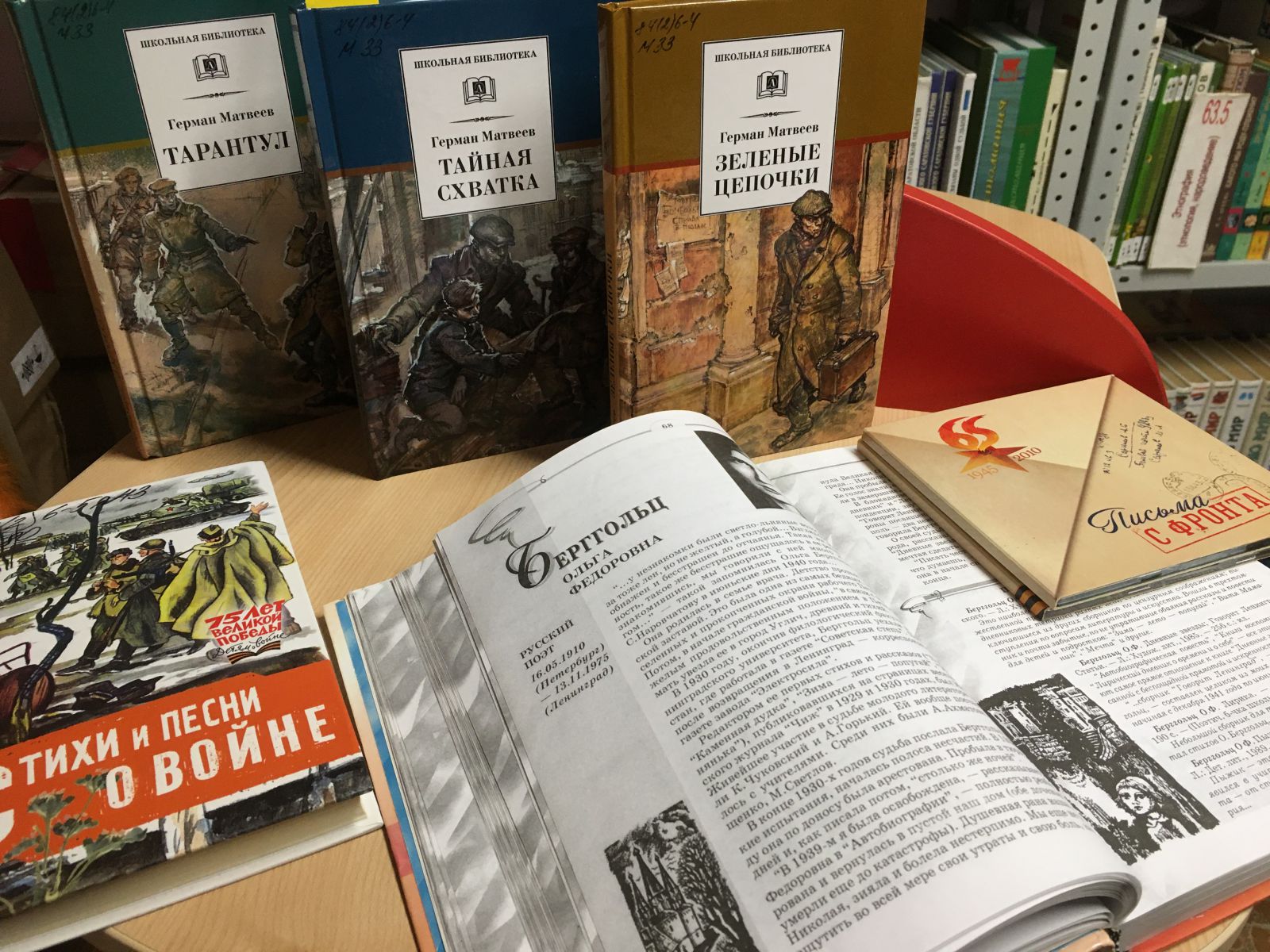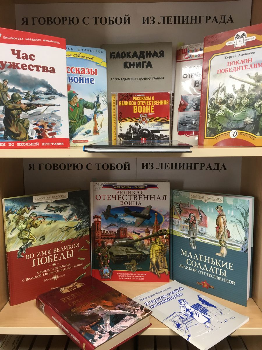 К памятной дате в филиале так же открыта книжная выставка. Народу – победителю посвящаются книги – «Блокадная книга» Алеся Адамовича и Даниила Гранина, «Я говорю с тобой из Ленинграда» Виктории Кононенко, «Рассказы о войне» Сергея Алексеева, сборники «Час мужества», «От Москвы до Берлина», «Великая Отечественная война 1941-1945 гг» и другие.