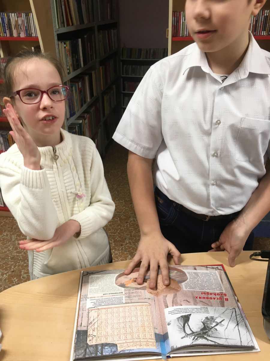 Так же юные читатели поговорили о «Дороге жизни», 80-летие которой мы отмечали в прошлом году, о водителях-героях, перевозивших продовольствие в город по льду Ладожского озера под вражескими бомбежками, о мужестве жителей и о крайне тяжелых условиях голода и холода.