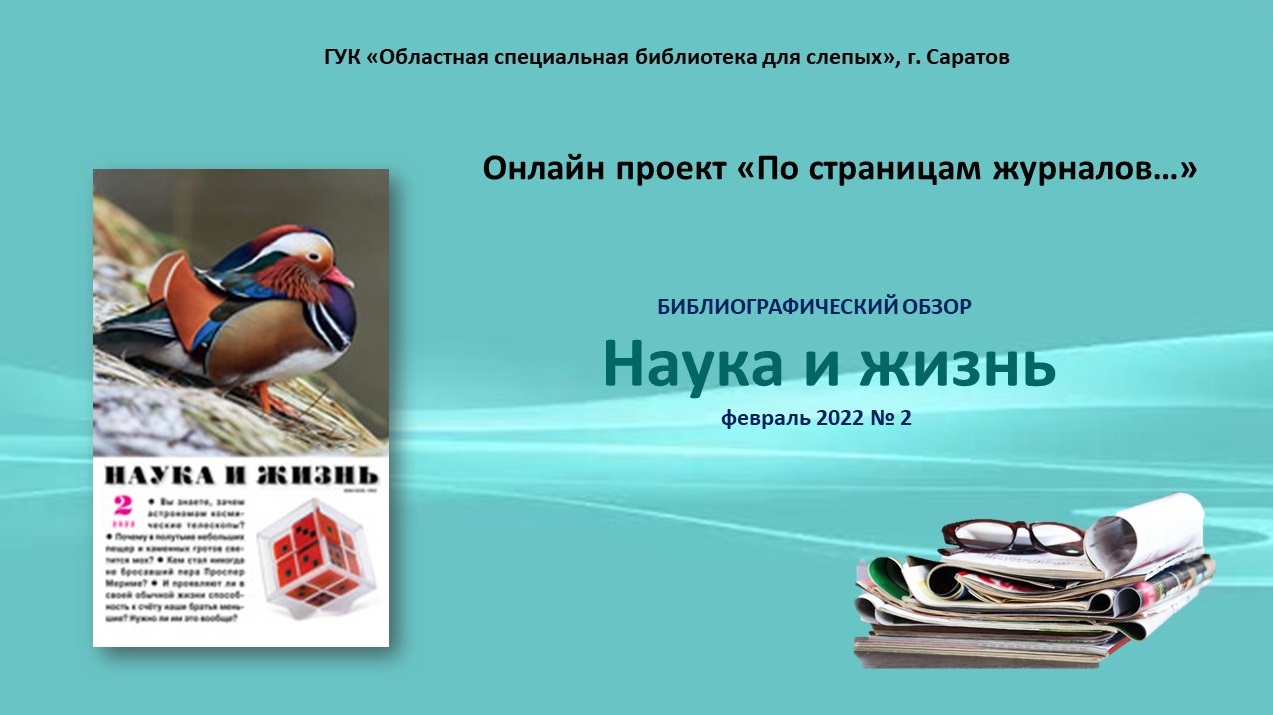 Тифлобиблиографический отдел Областной специальной библиотеки для слепых предлагает вашему вниманию библиографический обзор журнала «Наука и жизнь» за февраль 2022 года.