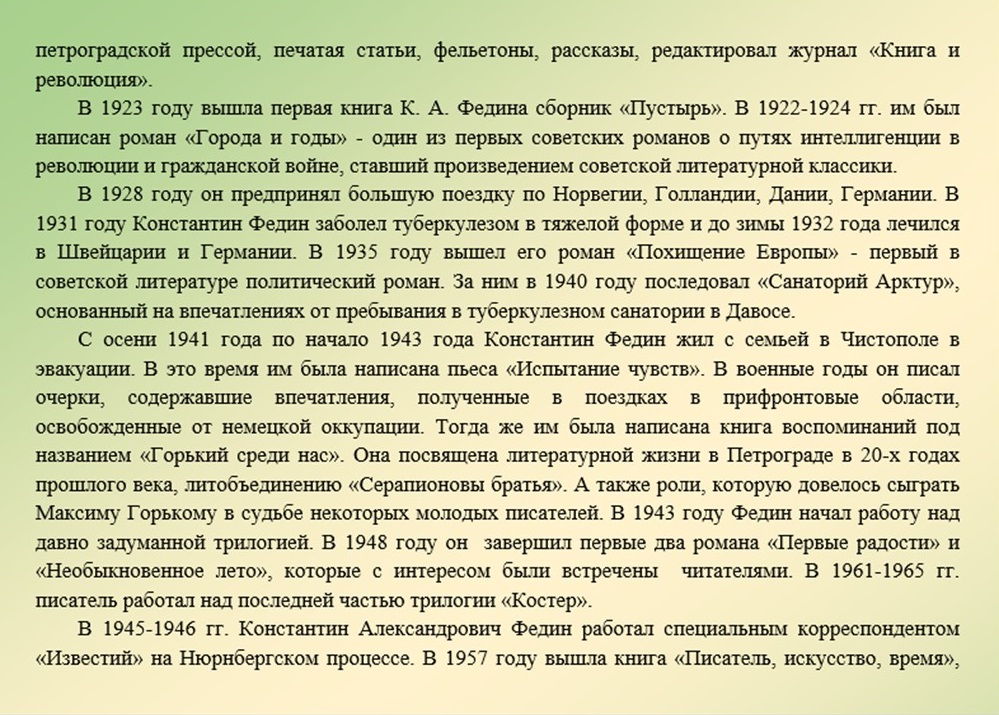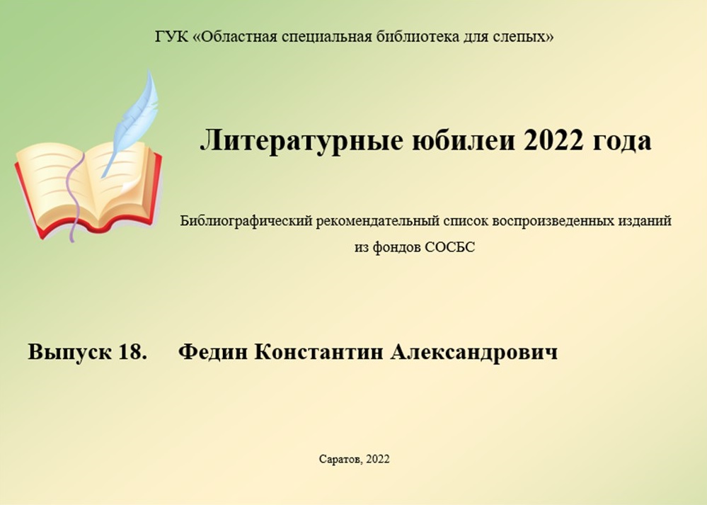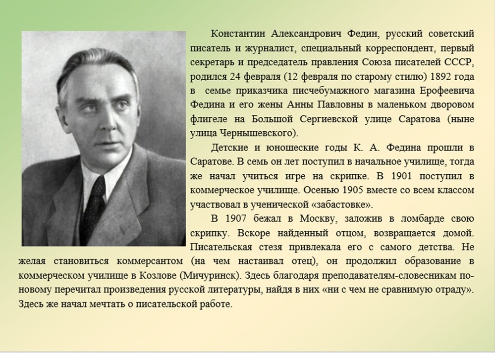 Литературные юбилеи 2022 года. Константин Александрович Федин (1892 - 1977)