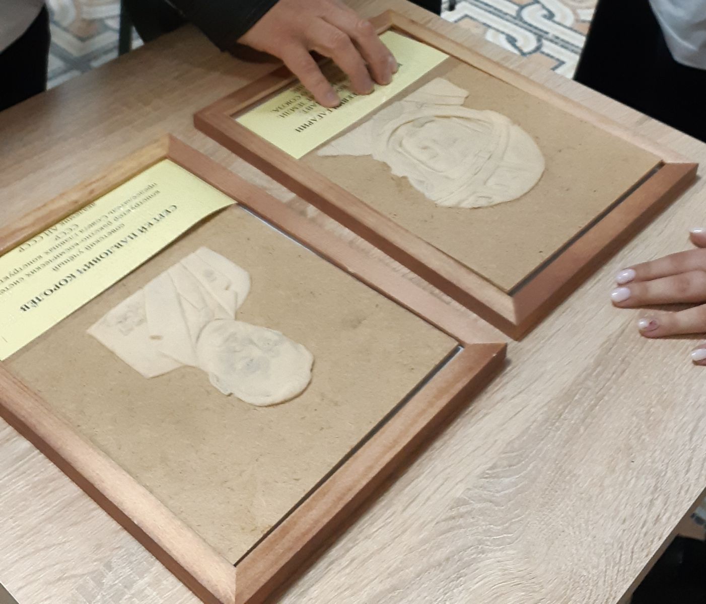 На выставке представлены барельефы Юрия Алексеевича Гагарина и Сергея Павловича Королёва.