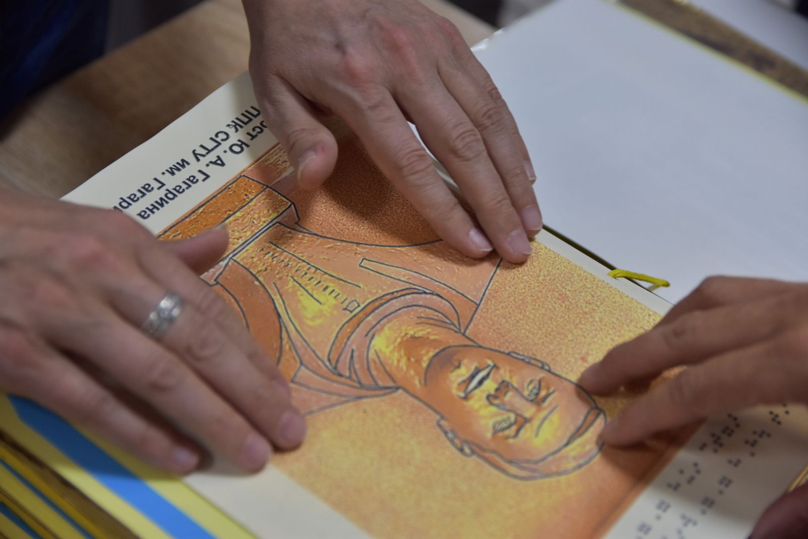 При создании альбома были использованы все возможные специальные форматы, адаптированные для основной категории наших читателей. Это укрупнённый шрифт, рельефно-точечный шрифт Брайля, изображения в цвете на всю страницу А4 для максимально удобного распознавания слабовидящими, рельефно-графические иллюстрации, адаптированные для восприятия изображения незрячими. И новый формат — постраничное аудиосопровождение!