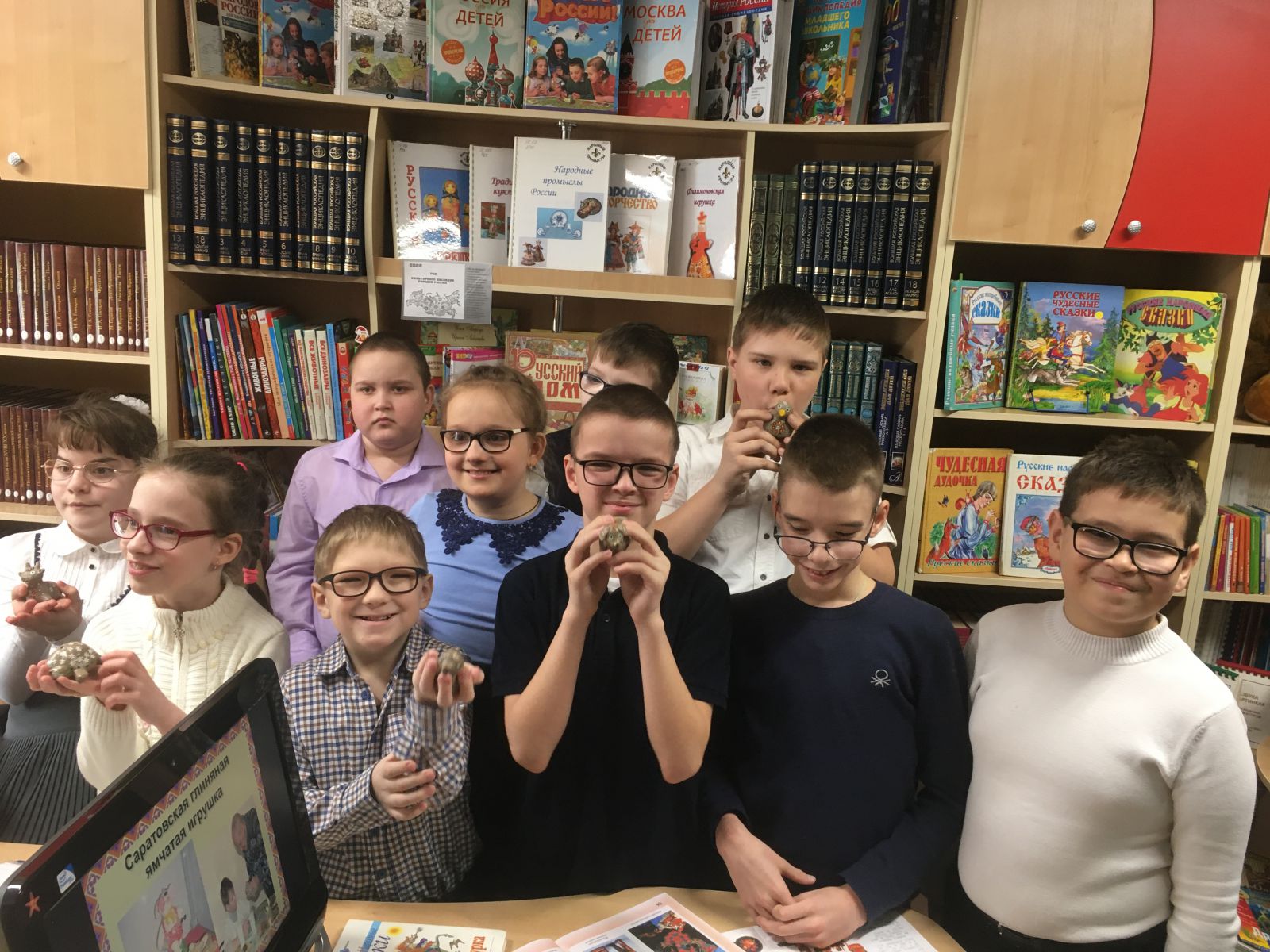 Особый интерес у ребят вызвал рассказ про изготовление глиняной игрушки. Промысел зародился в начале XVII века в пригородных русских деревнях Саратова и на окраинах города, в местах залегания глин, пригодных для изготовления игрушки. Широкое распространение промысел получил во второй половине XIX века.
