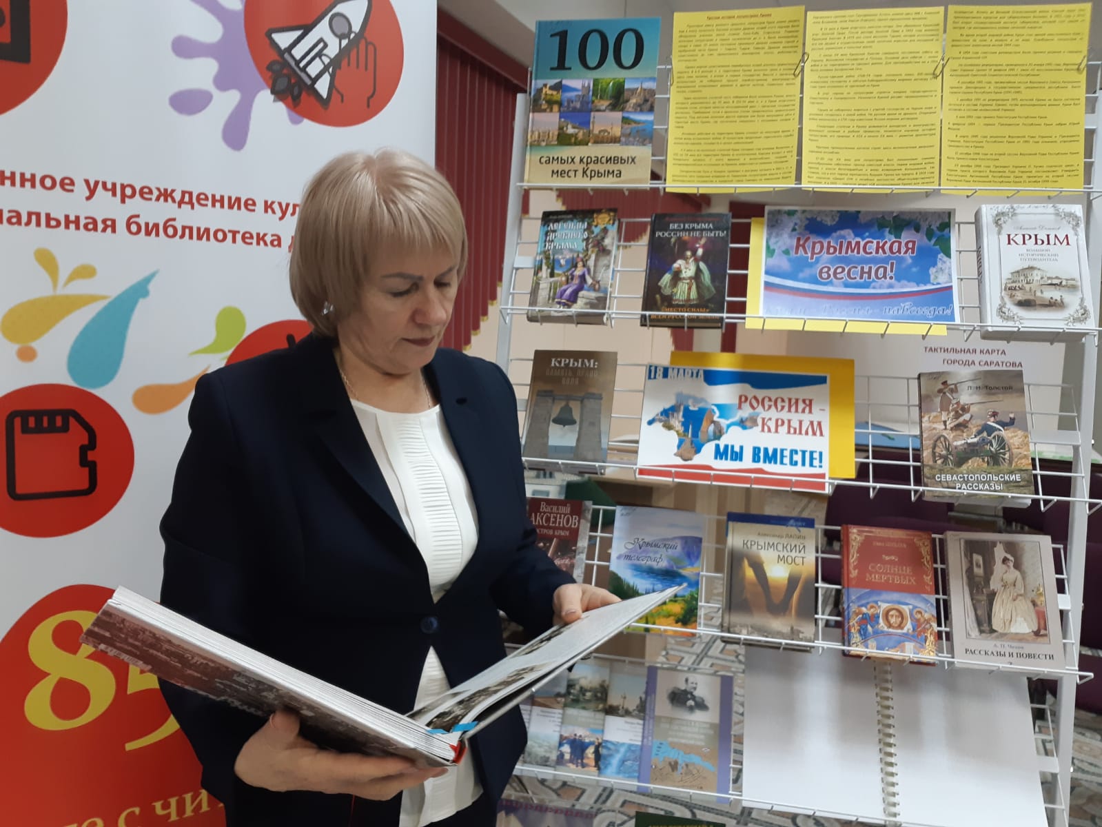 В этом году россияне отмечают восьмую годовщину исторического события. Крым вернулся в родную гавань уже навсегда. Это событие стало всероссийским праздником. ГУК «Областная специальная библиотека для слепых» ежегодно отмечает вместе с читателями этот исторический день. В июле 2018 года ГУК «Областная специальная библиотека для слепых» заключила договор о творческом взаимодействии с государственным бюджетным учреждением культуры г. Севастополя «Региональная информационно-библиотечная система – Центральная городская библиотека имени Льва Николаевича Толстого». В библиотеке работает Отдел для слепых и слабовидящих. Сегодня, 18 марта 2022 года мы проводим громкие инклюзивные чтения уникального издания, переданного из фондов ЦГБ им. Л.Н. Толстого директором Волковой Еленой Анатольевной в фонд нашей библиотеки – альбома «Севастополь в бою и труде. 1941 – 1965».