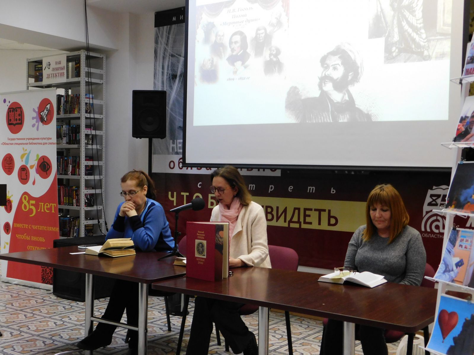Ведущая мероприятия Елена Хатыпова напомнила читателям историю создания поэмы, представила галерею образов главных героев. Во время громких чтений сотрудники библиотеки прочли описания помещиков, их быта, характерных, присущих только им, черт.