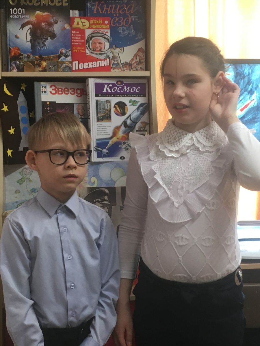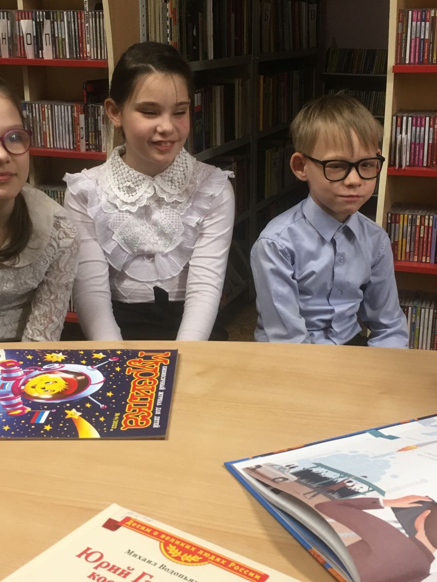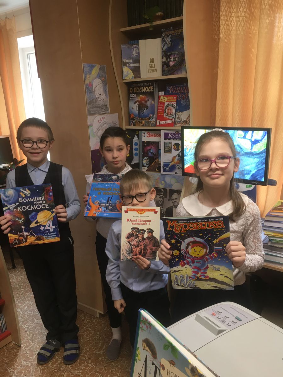 Юных читателей познакомили с историей освоения космоса. С давних времён загадочный мир планет и звёзд притягивал к себе внимание людей. Первые покорители воздуха были герои греческой мифологии Икар и Дедал. Учащиеся с большим интересом прослушали истории о воздушных шарах, дирижаблях, о первых самолётах и вертолётах. Ребята узнали о том, как на околоземную орбиту был выведен первый в мире искусственный спутник Земли, открывший космическую эру в истории человечества.