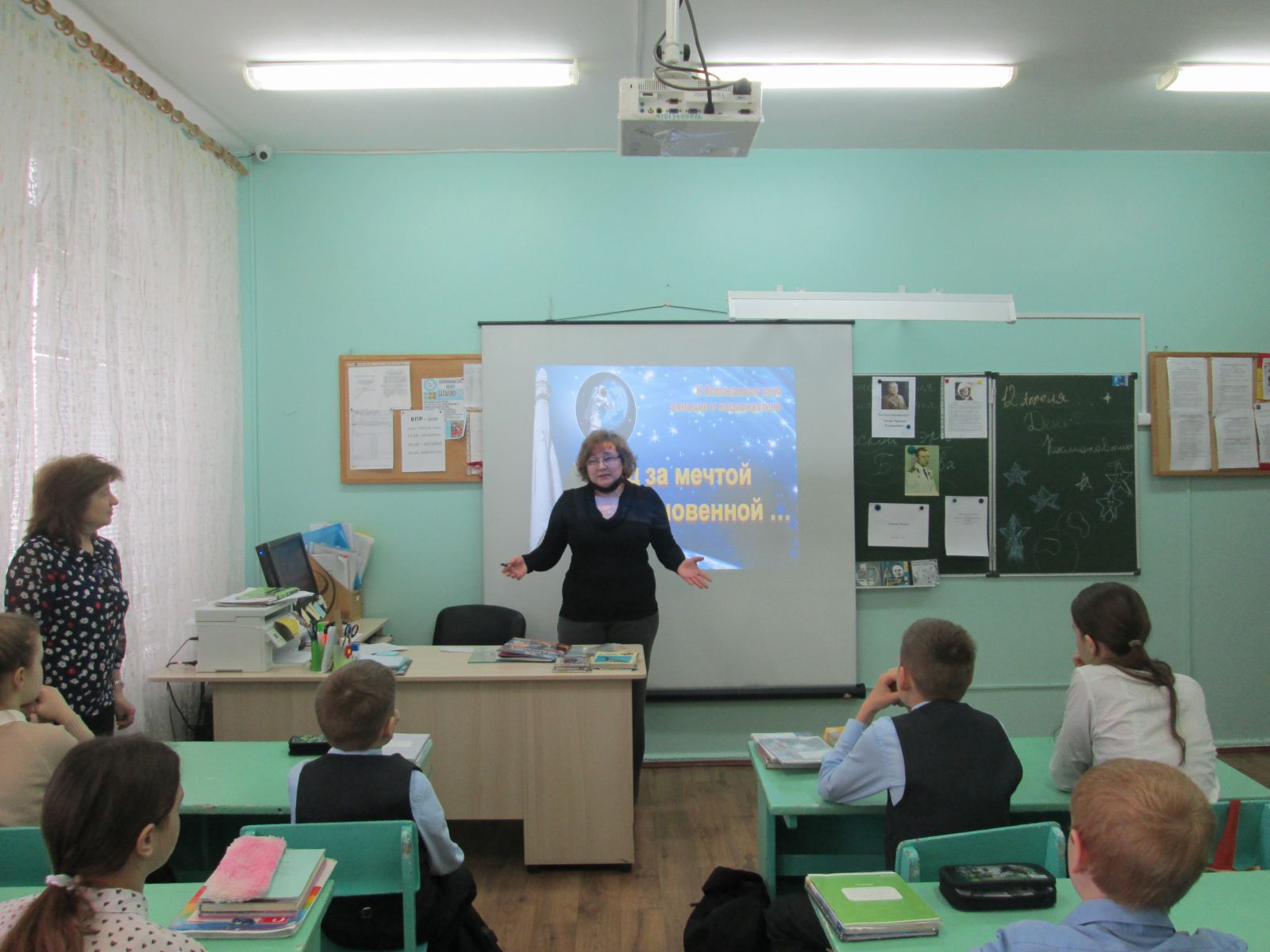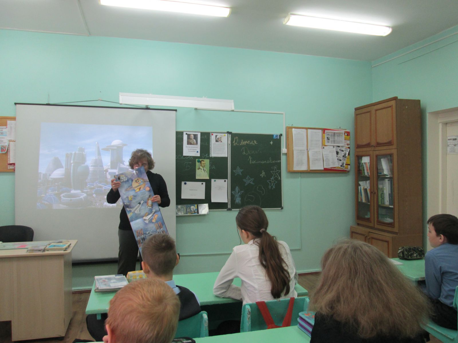 По пути следования школьники познакомились с историей покорения космоса, с судьбами людей, благодаря которым человек осуществил свою заветную мечту совершить полет в безвоздушное пространство, с книгами о космосе и космонавтах. Ребята узнали о возникновении праздника Всемирный день авиации и космонавтики, расширили свои знания о Вселенной, ответили на вопросы космо-викторины, отгадали загадки, вспомнили фразеологизмы с «космическими» словами. С особым удовольствием дети посетили космо-кинотеатр: видеоматериалы и отрывки из мультфильмов помогли им совершить экскурсию по Вселенной, побывать на неизвестных планетах.