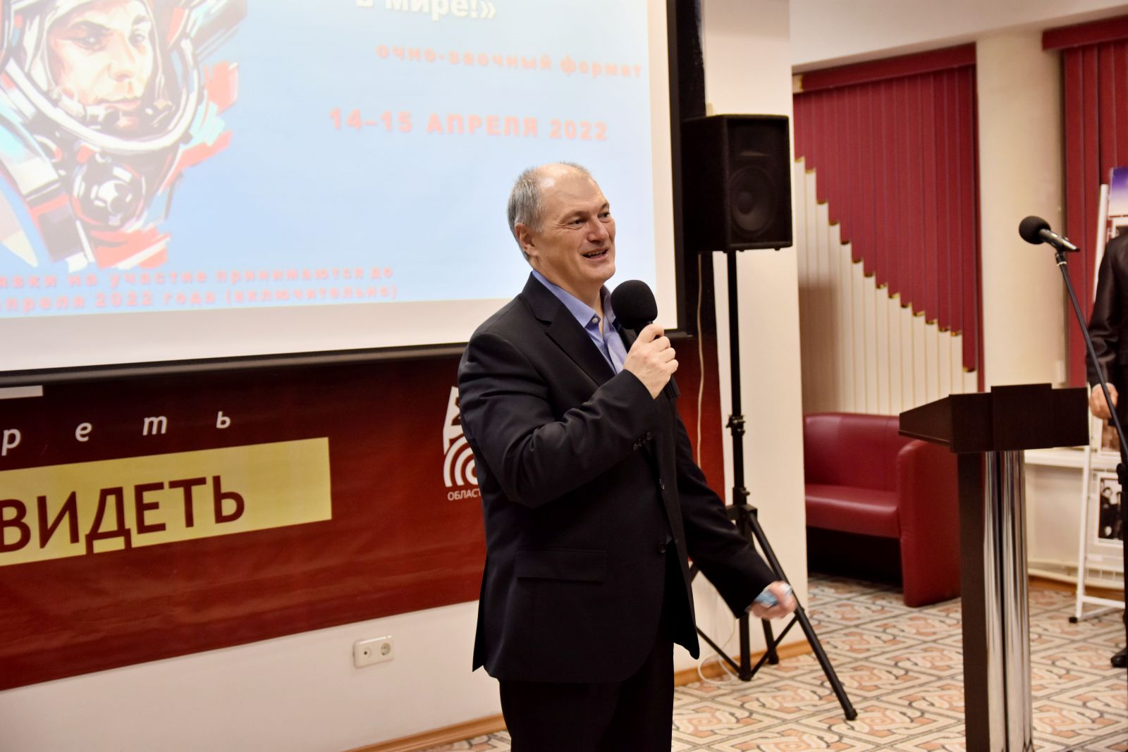 Депутат Саратовской областной Думы, директор Саратовского театра кукол «Теремок» Александр Удалов тепло приветствовал всех участников и рассказал о творческом взаимодействии библиотеки и театра, отметил, как это важно, что такое грандиозное событие мы отмечаем на инклюзивной площадке Областной специальной библиотеки для слепых. Выразил слова поддержки библиотеке в развитии приближения космоса для людей с ограничениями по зрению.
