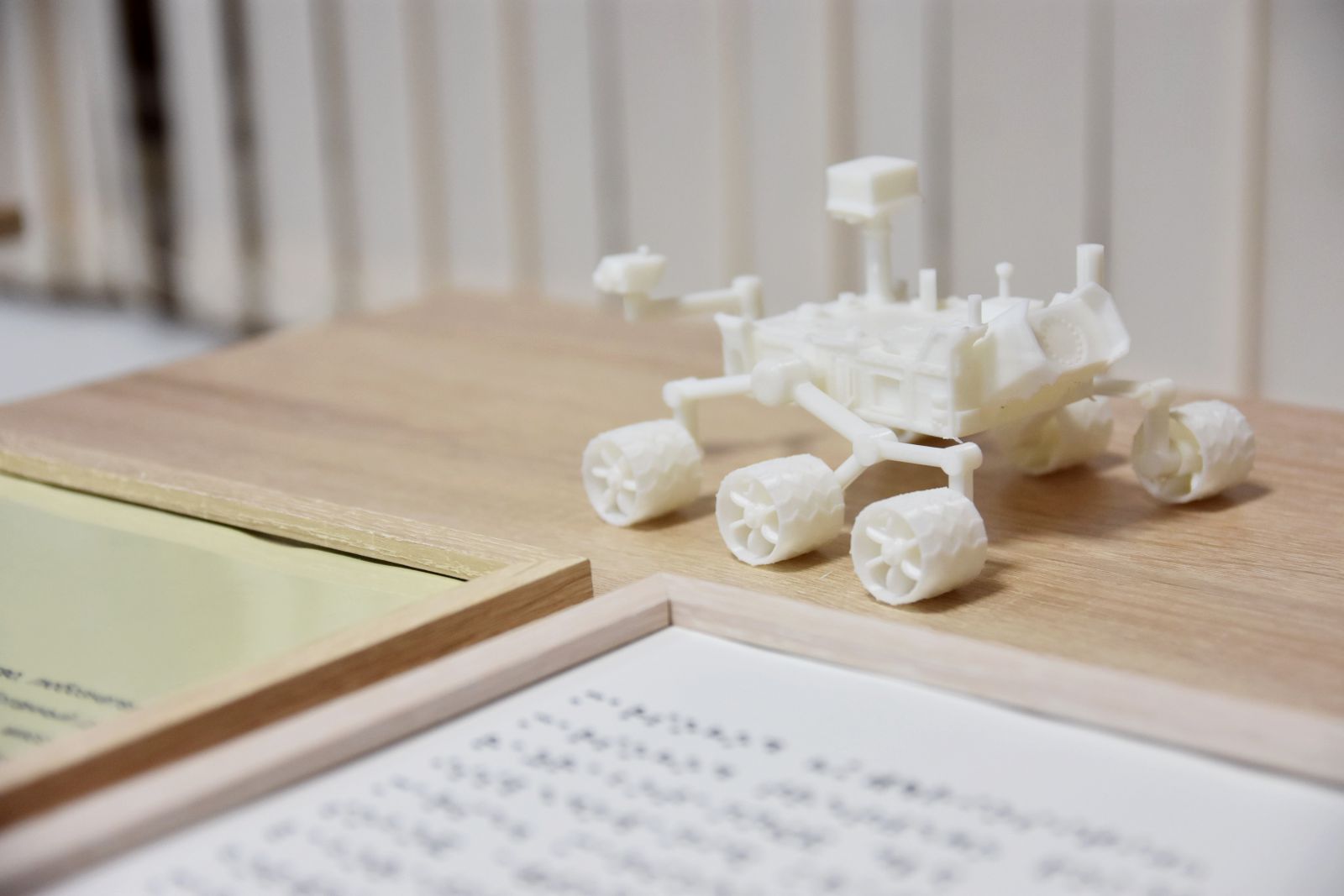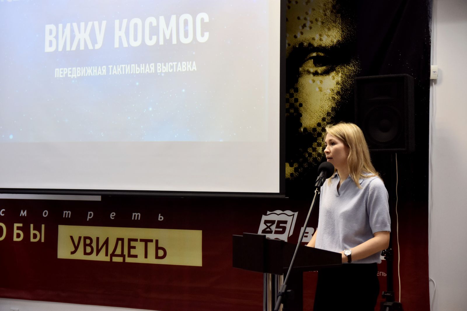 Дарья Клименко, ведущий методист отдела инновационно-методической работы ГУК «Областная специальная библиотека для слепых» провела презентацию тактильной выставки «Вижу космос», рассказала об объектах, представленных на выставке, этапах их создания.