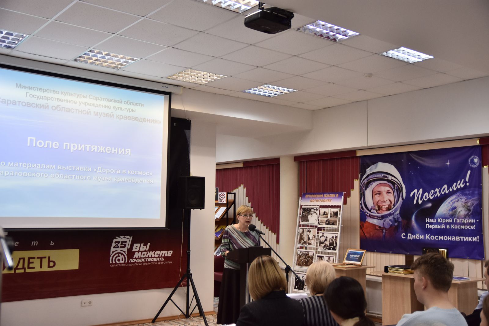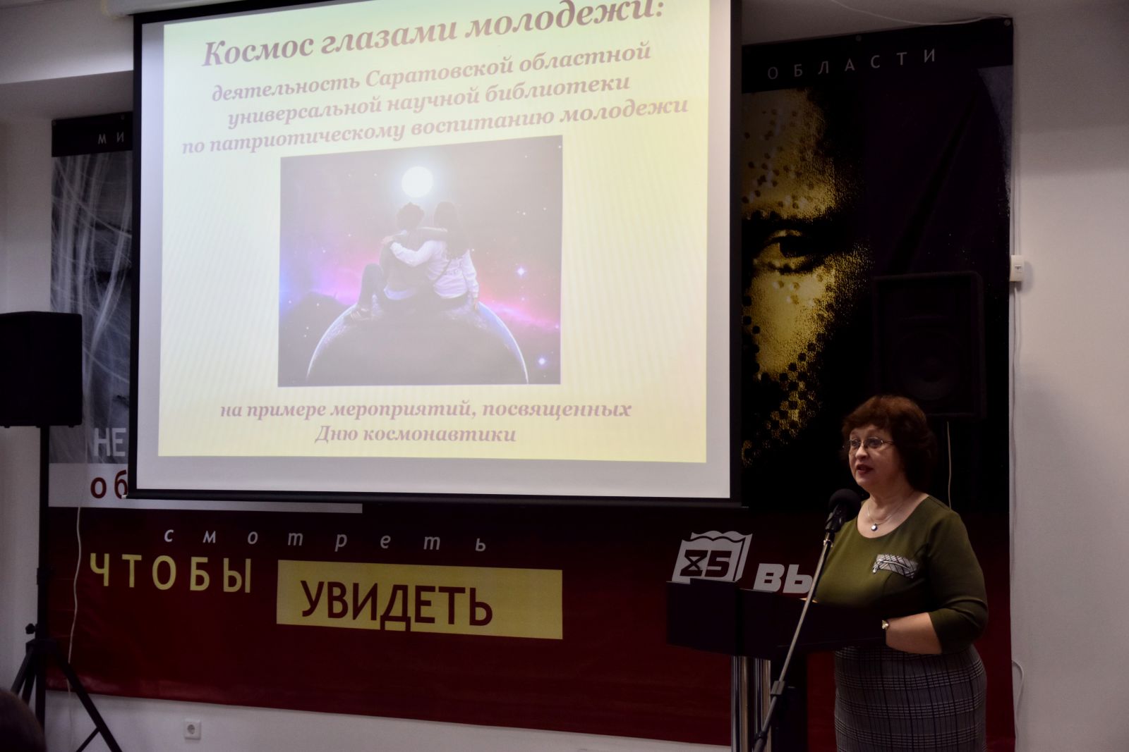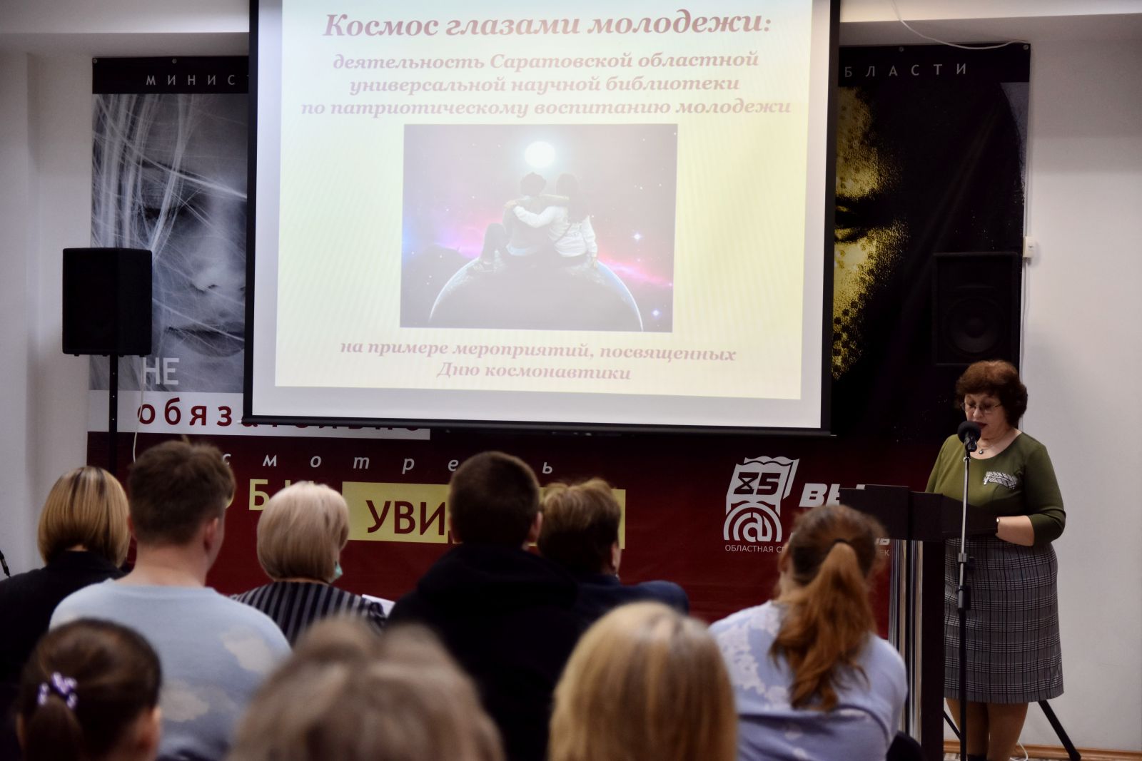 Саратовский регион во второй день работы Гагаринских чтений представила МУК «Марксовская межпоселенческая централизованная библиотечная система». Библиотекарь отдела краеведения Татьяна Денисова рассказала о работе с пользователями библиотеки по расширению знаний об истории освоения космоса, о первых космонавтах, популяризации литературы о достижениях в истории космонавтики, напомнила всем участникам о том, что Юрий Гагарин является Почётным гражданином города Саратова (звание присвоено в 1967 году), представила интересную форму работы – арт-тимбилдинг.
