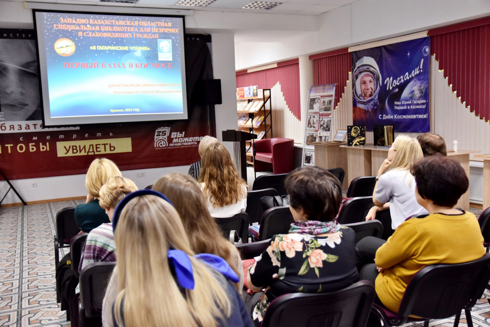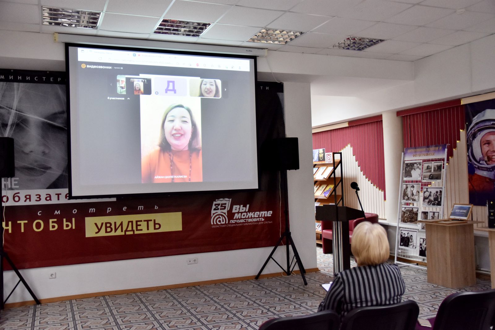 Айжан Даулеткалиева, руководитель отдела КГУ «Западно-казахстанская областная специальная библиотека для незрячих и слабовидящих граждан управления культуры Западно-казахстанской области» (г. Уральск, Республика Казахстан) рассказала о фонде в специальных форматах, посвящённых космической тематике, Первому полёту человека в космос, о первом космонавте Республики Казахстан – Токтаре Аубакирове.