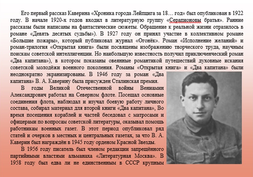 Литературные юбилеи 2022 года. Каверин Вениамин Александрович