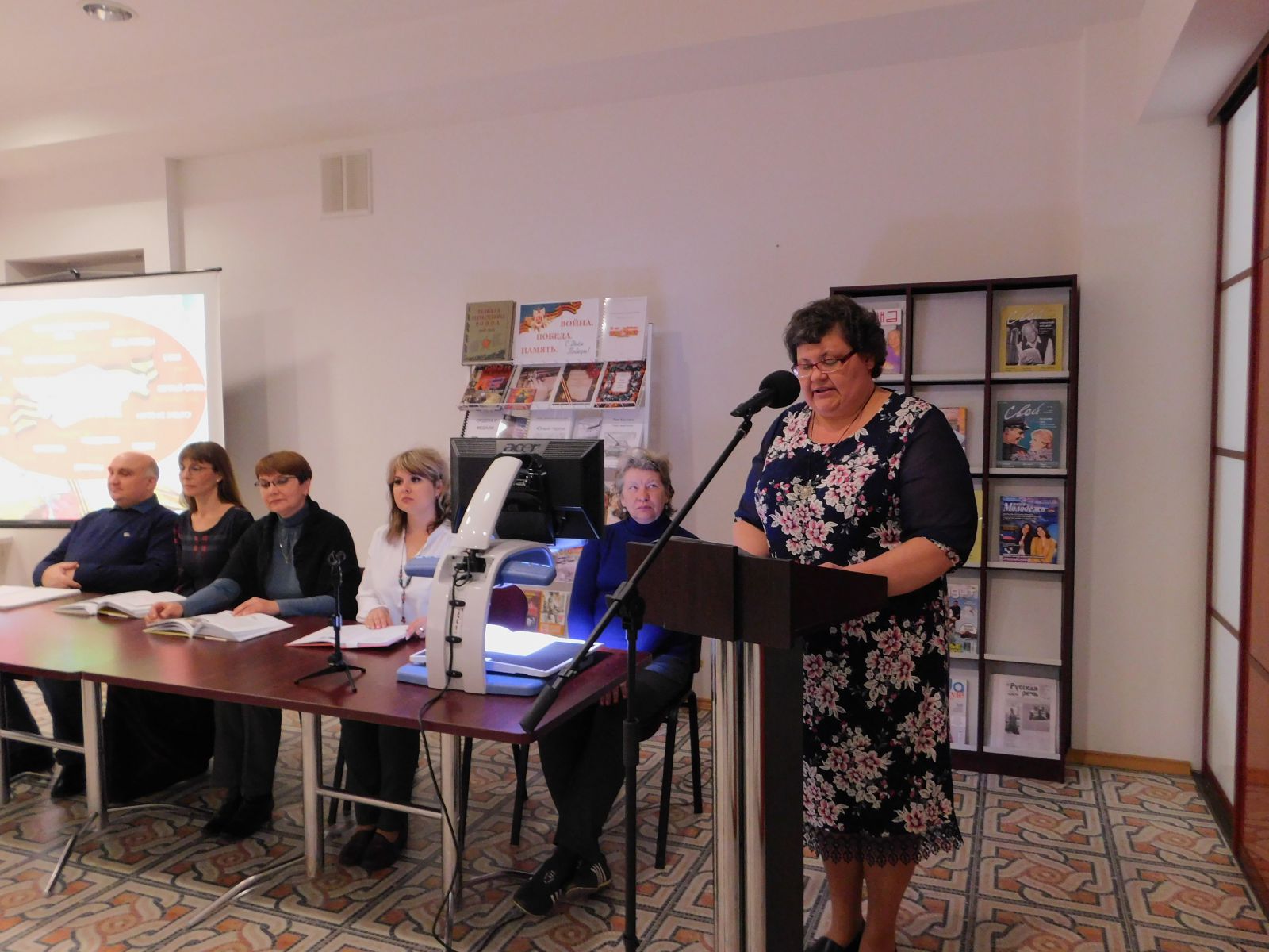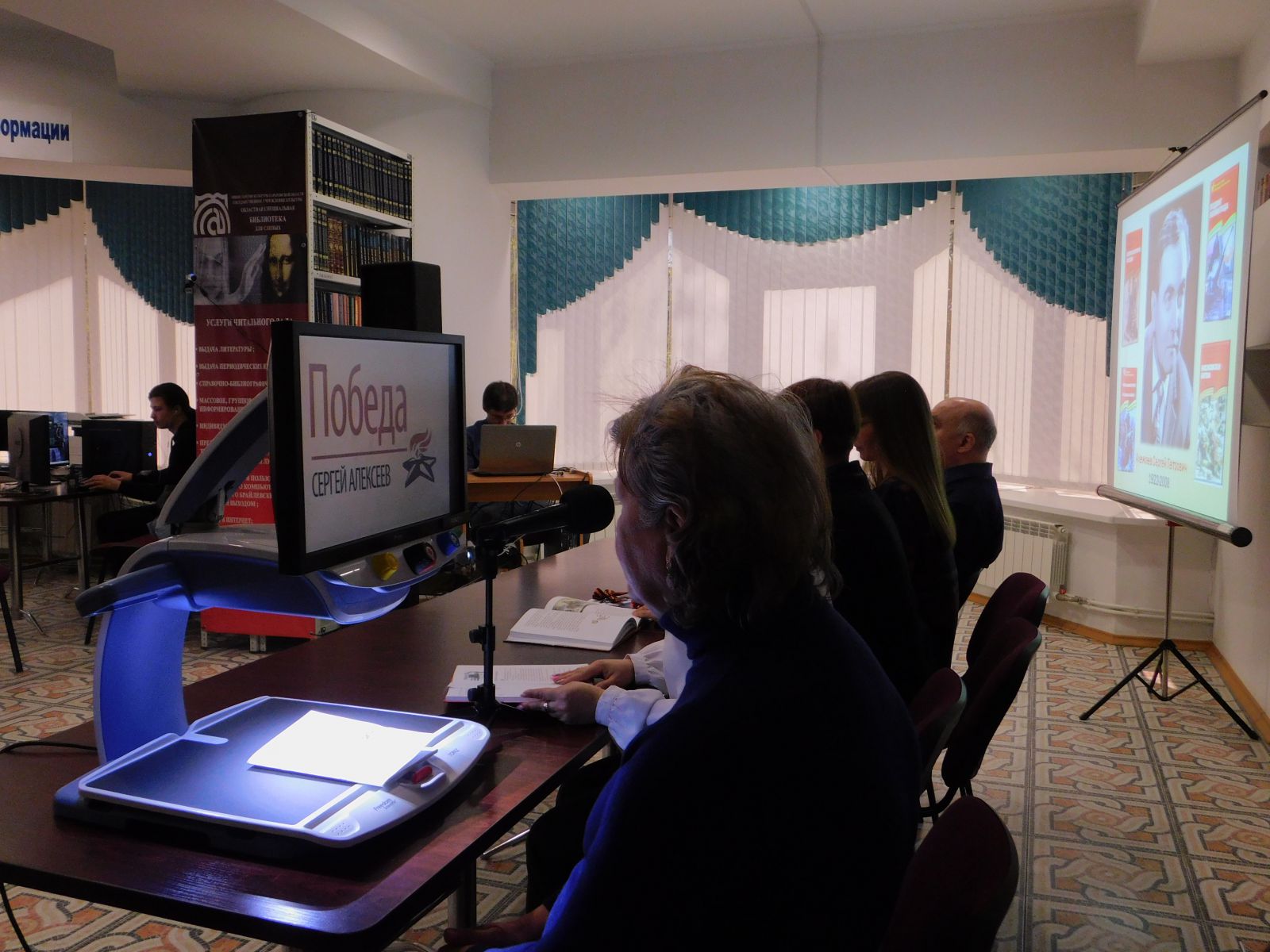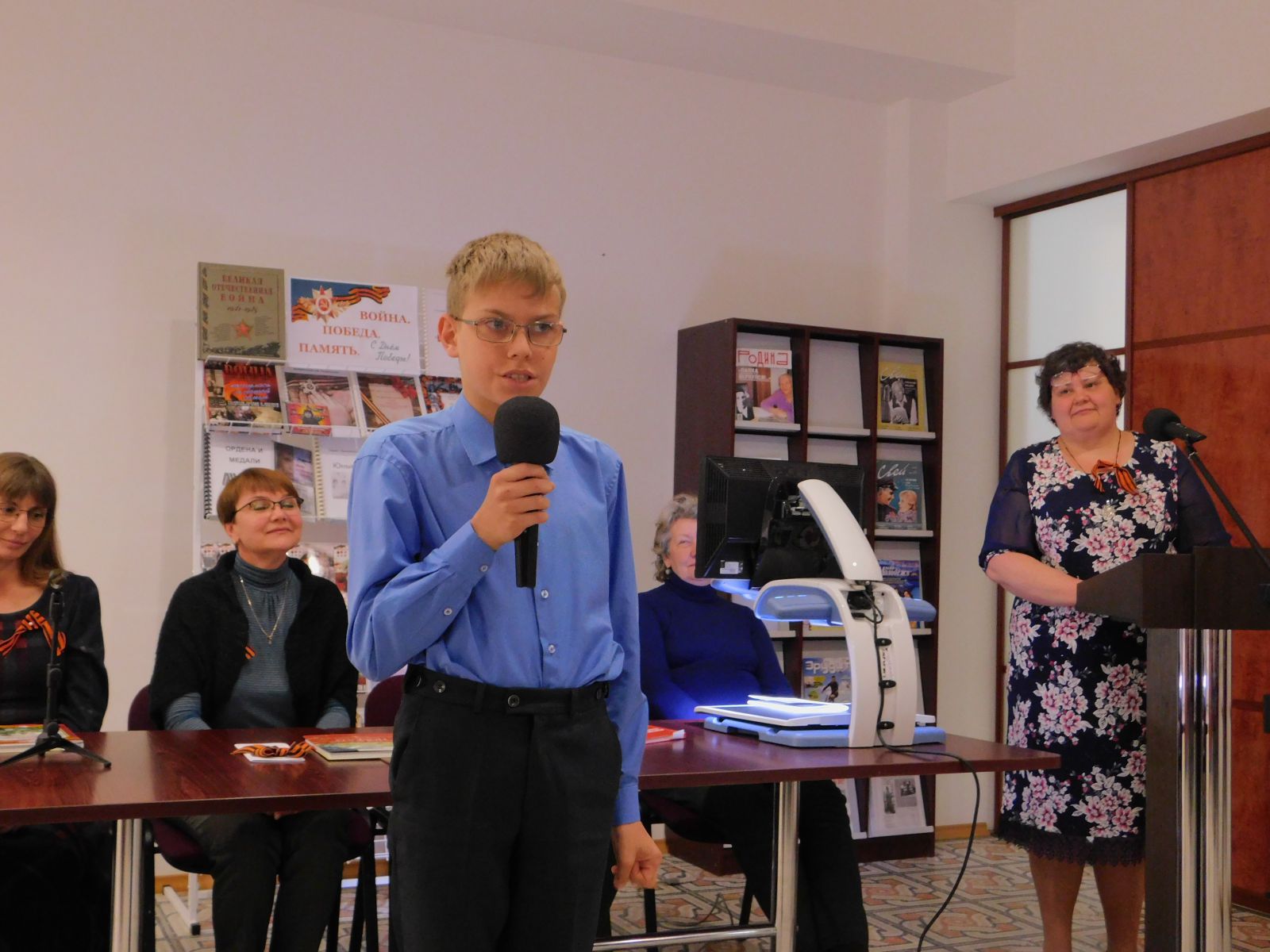 Акцию открыла директор ГУК «Областная специальная библиотека для слепых» Ольга Новикова. Она напомнила участникам, что в эти майские дни мы празднуем 77-летие Великого и Главного праздника страны – Дня Победы в Великой Отечественной войне 1941-1945 гг. Оказавшись в самом пекле дети выносили то, что, порой, не под силу взрослым, потому всех их можно назвать маленькими героями большой войны. Война унесла 27 миллионов человек, из них 4 миллиона детей! Страшным было военное детство. За мужество и отвагу, проявленные в годы войны, более 3,5 миллионов мальчишек и девчонок были награждены орденами и медалями Советского Союза. Семь тысяч детей удостоены звания Героя Советского Союза. Закончила Ольга Ивановна словами: «В память о Великой Победе мы сегодня читаем книгу о войне».
