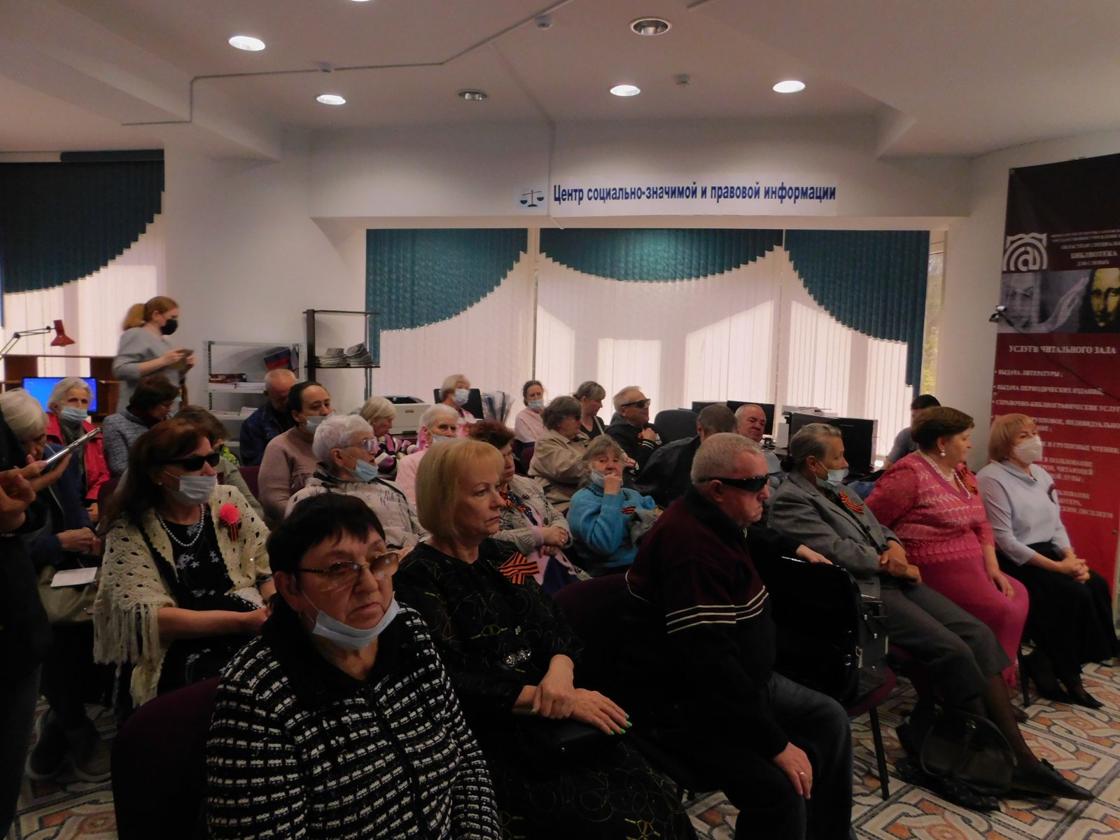 Зал был торжественно украшен баннерами, представлена книжная выставка ко Дню Победы «Война. Победа. Память».