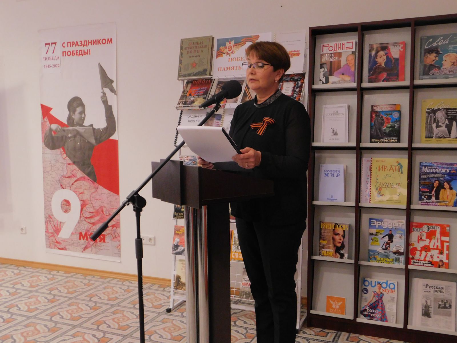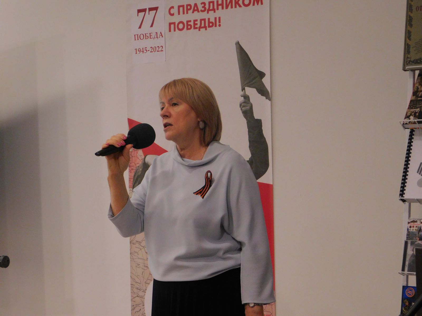 Мероприятие открылось приветствием директора Областной специальной библиотеки для слепых Ольги Новиковой. Ольга Ивановна поздравила ветеранов и всех присутствующих на мероприятии с Днём Победы. Пожелала всем мира, добра и сказала, что в эти майские дни мы отмечаем 77-годовщину Великой Победы нашего народа над фашистской Германией. Великая Отечественная война 1941-1945 гг. – это бесстрашие защитников Бреста, это почти 900 дней блокады Ленинграда. Это клятва панфиловцев: «Ни шагу назад, за нами Москва». Это добытая огнём и кровью победа под Сталинградом, это подвиг Курской дуги, это – штурм Берлина. День Победы – это единственный государственный праздник в России, когда гордость и скорбь смешаны в наших сердцах. В этот день мы говорим слова благодарности ветеранам и отдаём дань памяти не вернувшемся с войны.