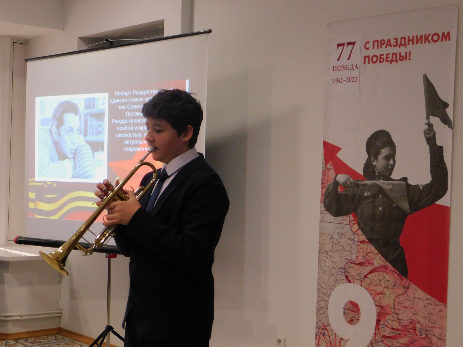 Открылась концертная программа соло на трубе в исполнении учащегося духового оркестра им. А.В. Лопатникова Егора Хвалова – Георгий Свиридов «Романс».
